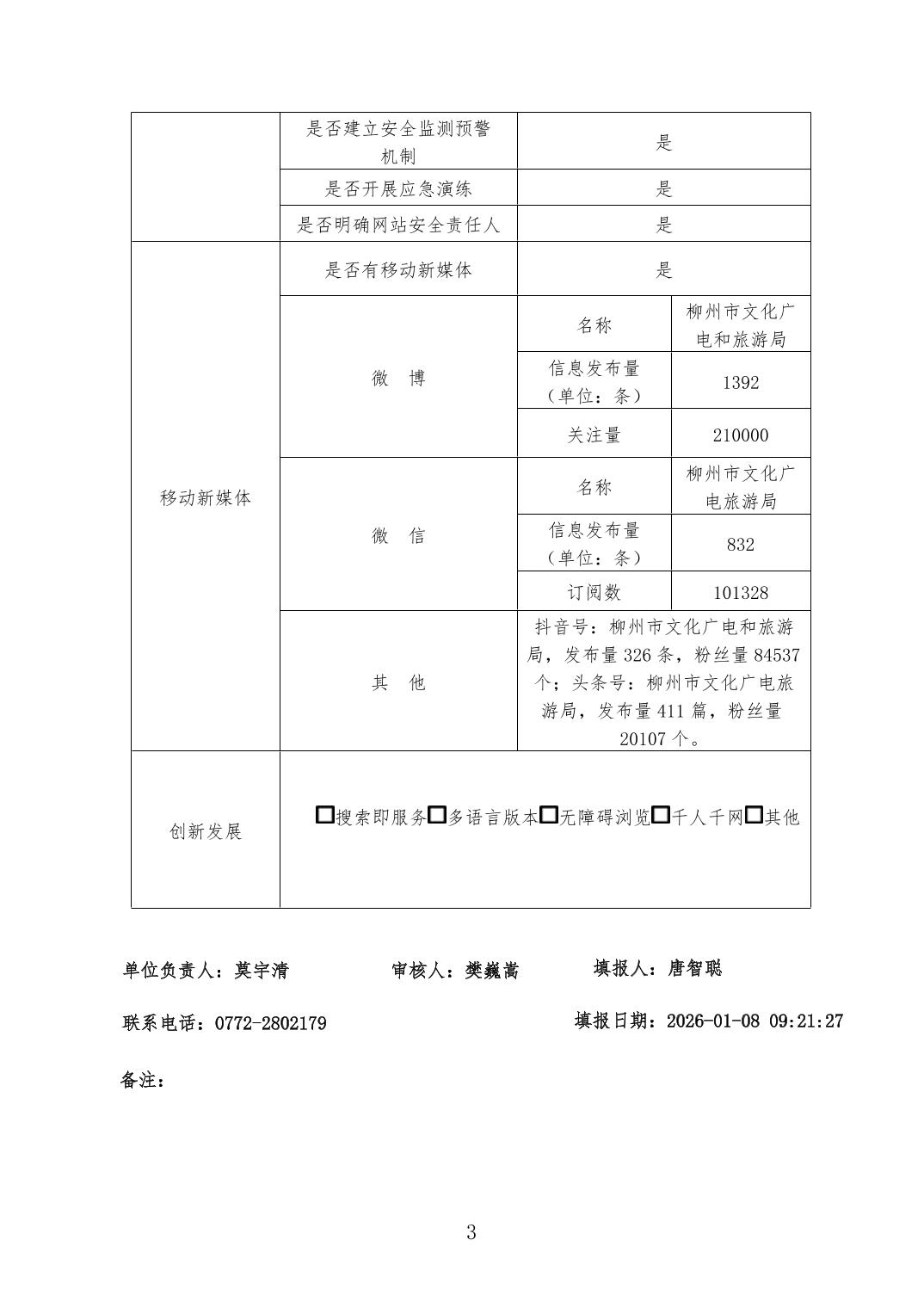 柳州市文化广电和旅游局2025年度《政府网站工作年度报表》