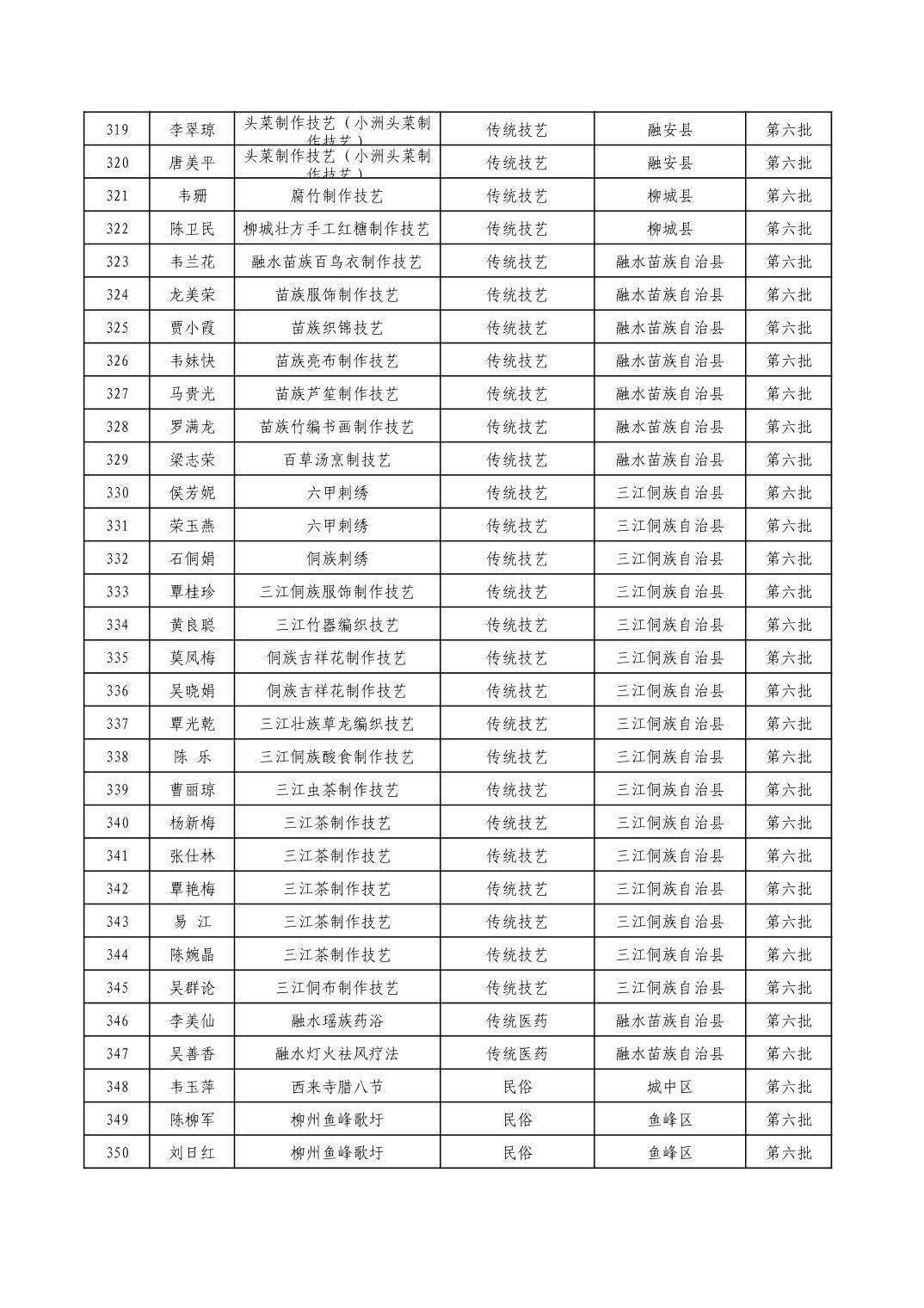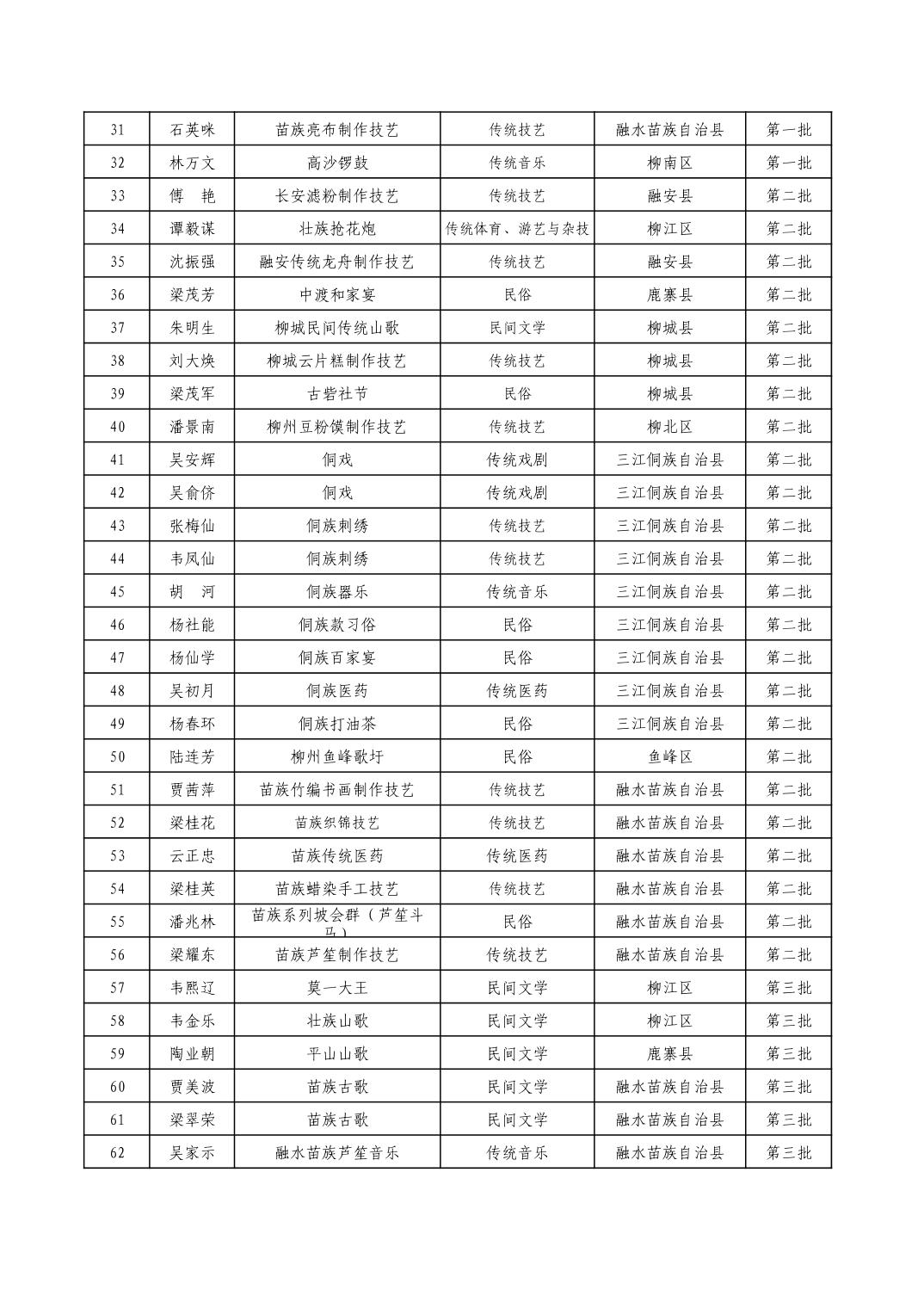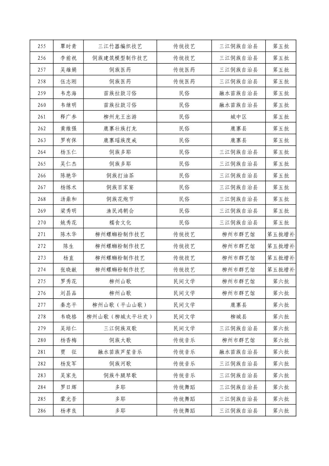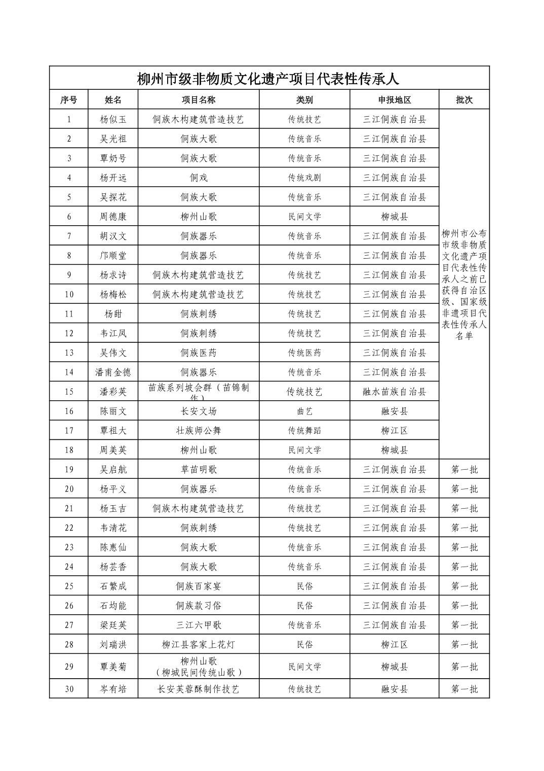柳州市级非物质文化遗产项目代表性传承人一览表