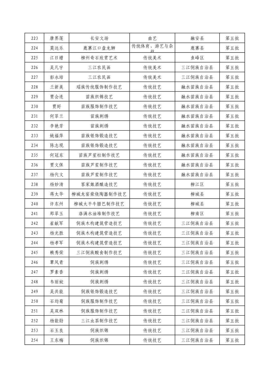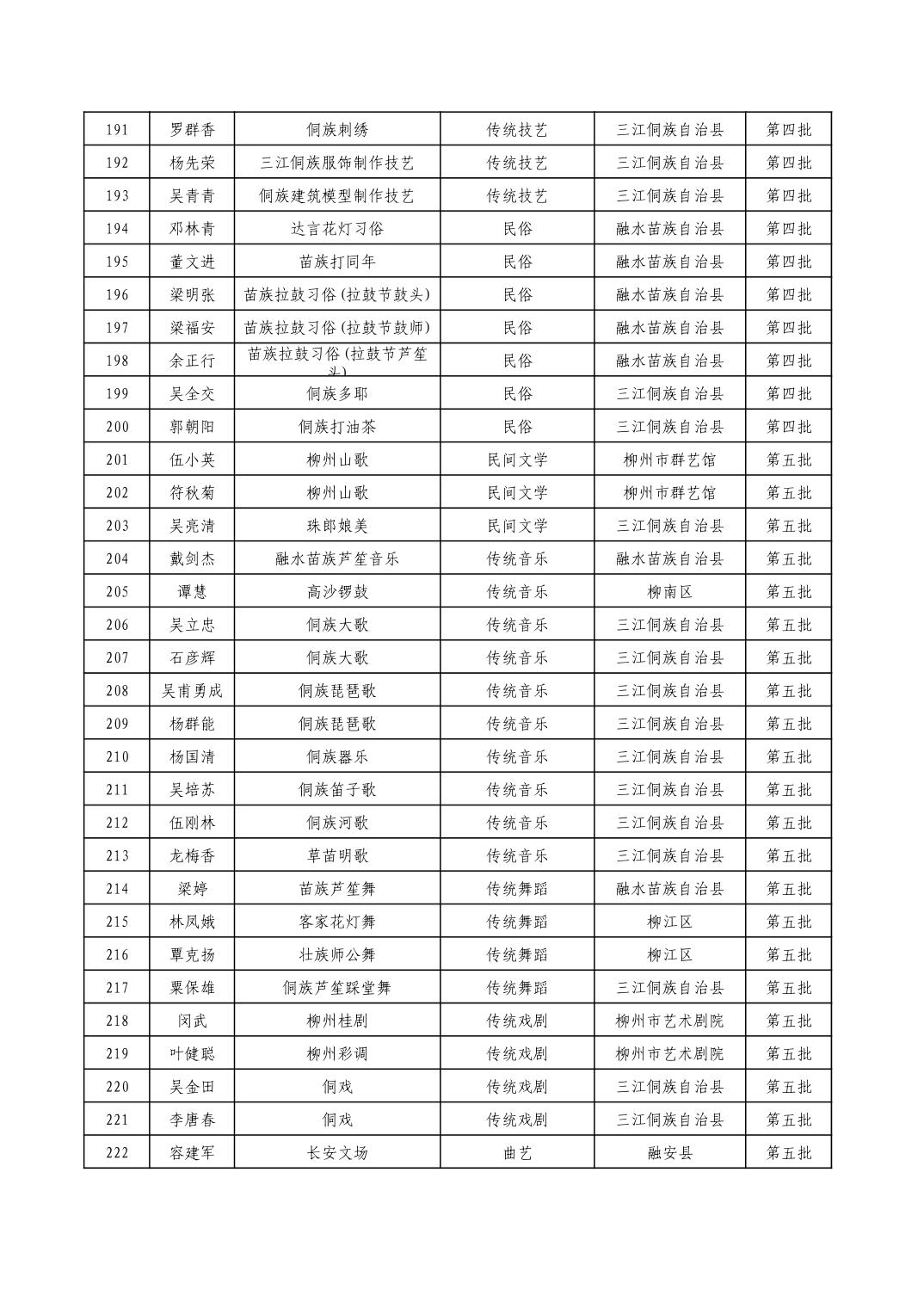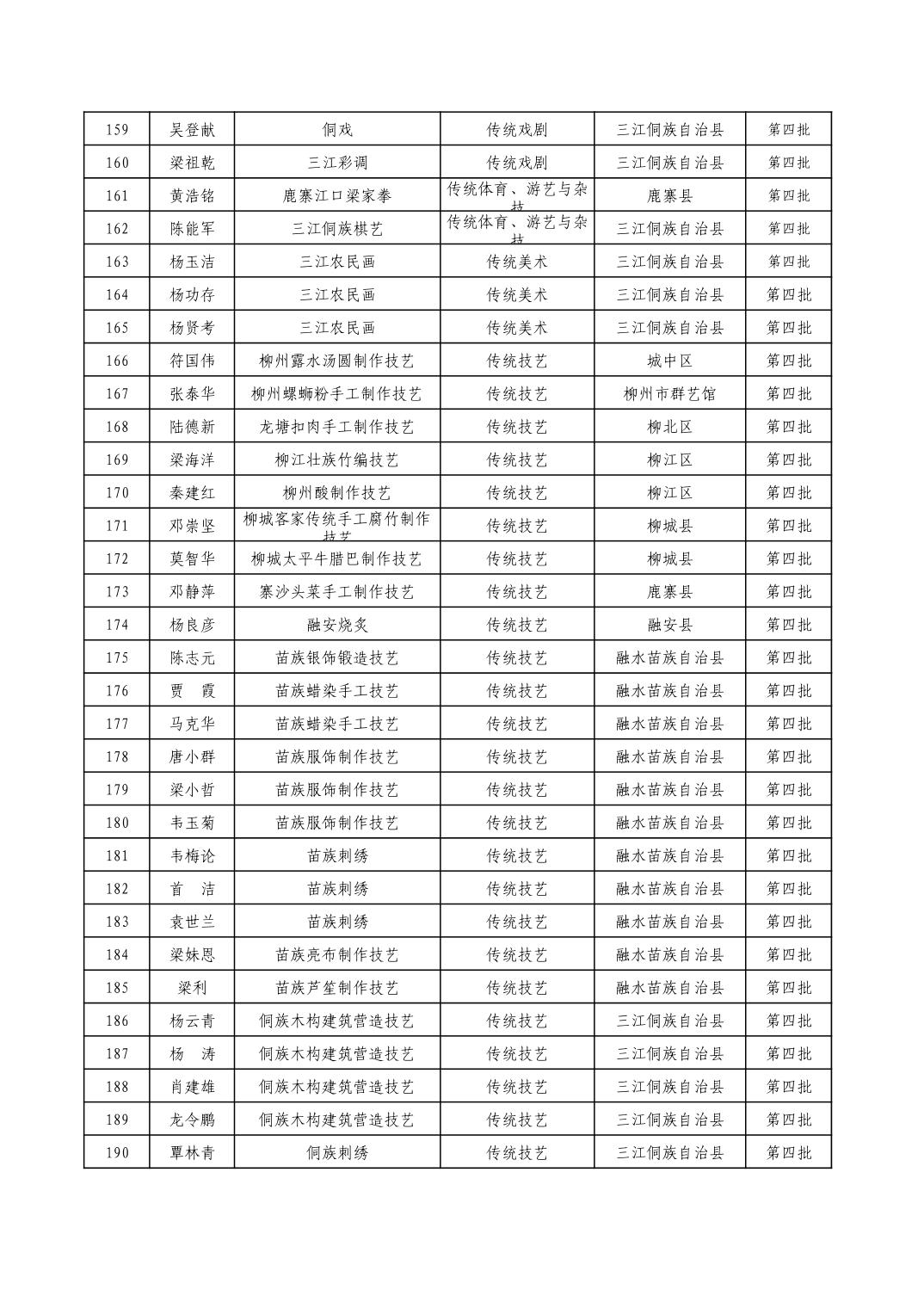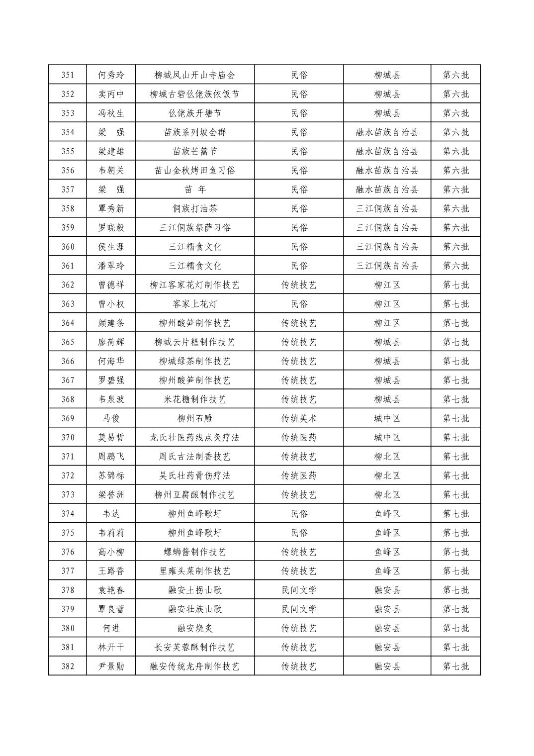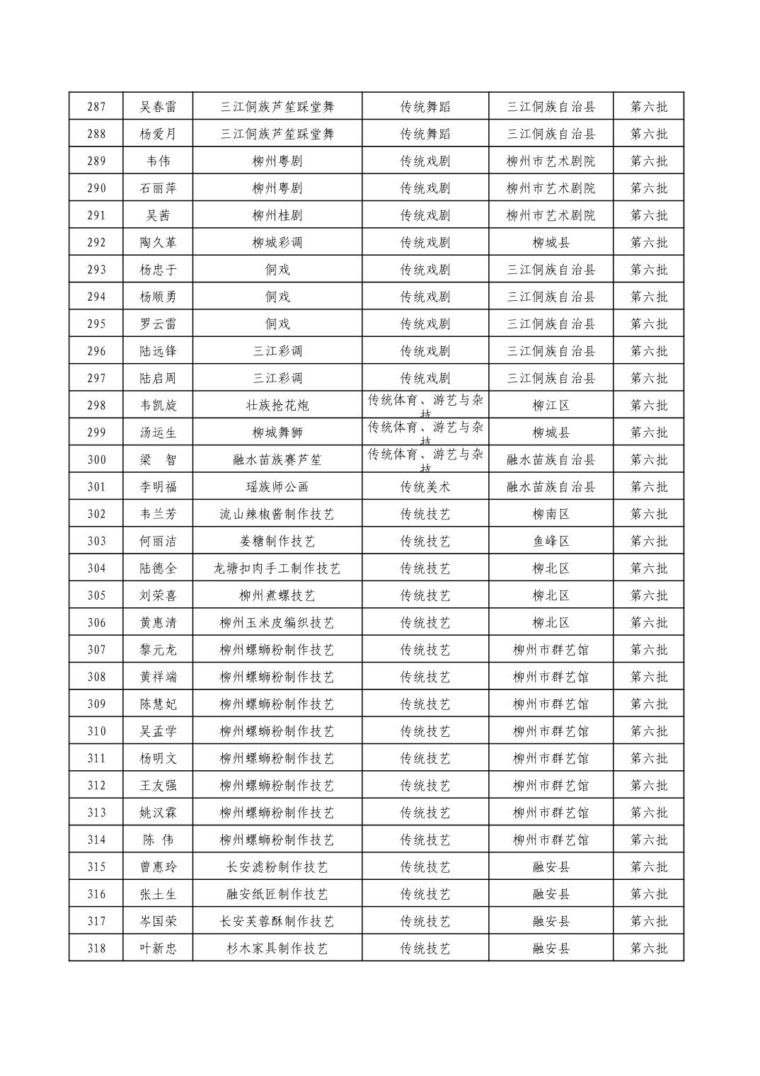 柳州市级非物质文化遗产项目代表性传承人一览表
