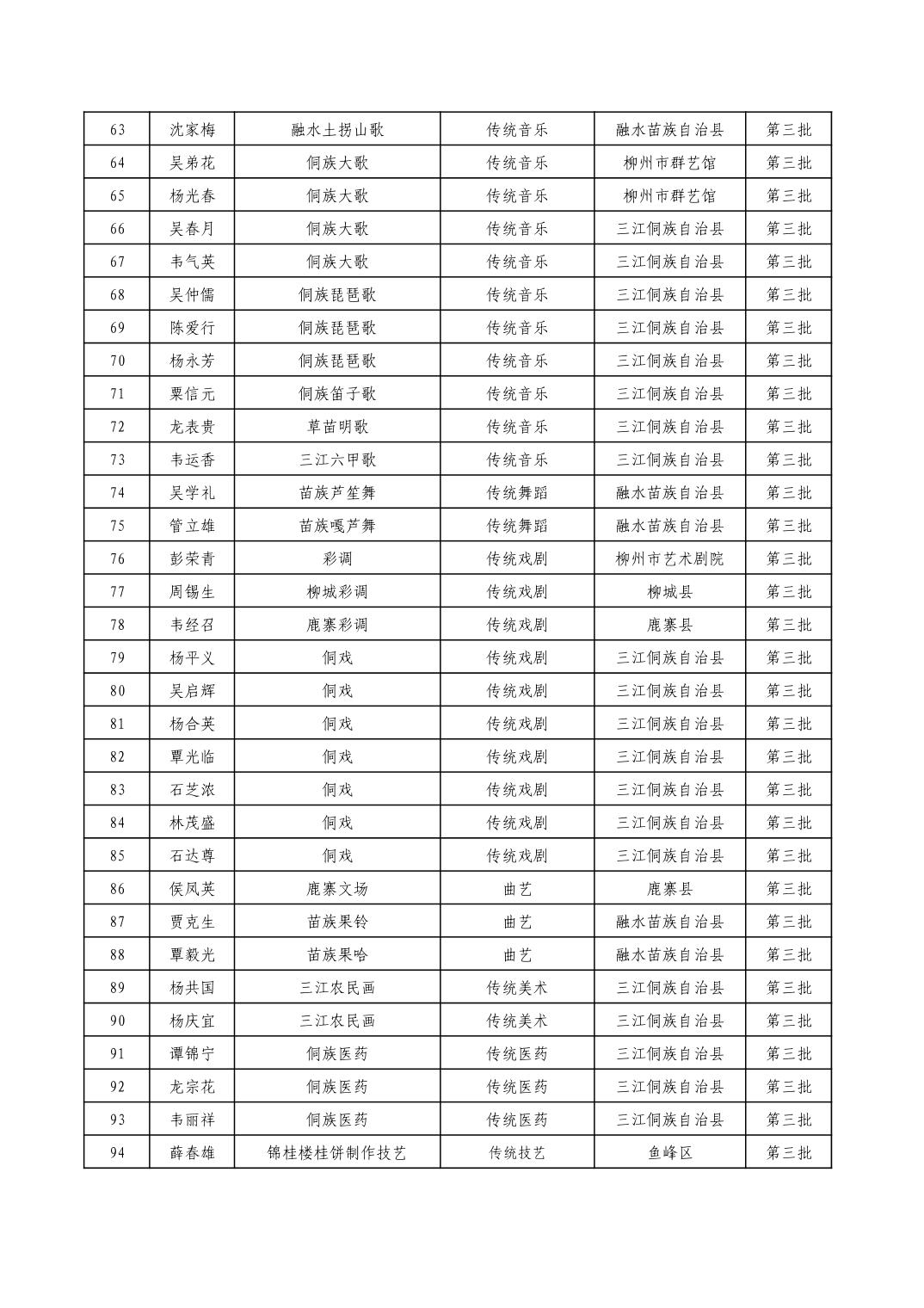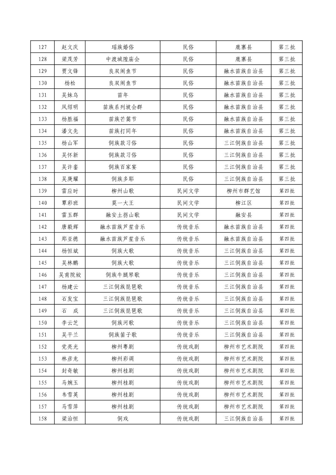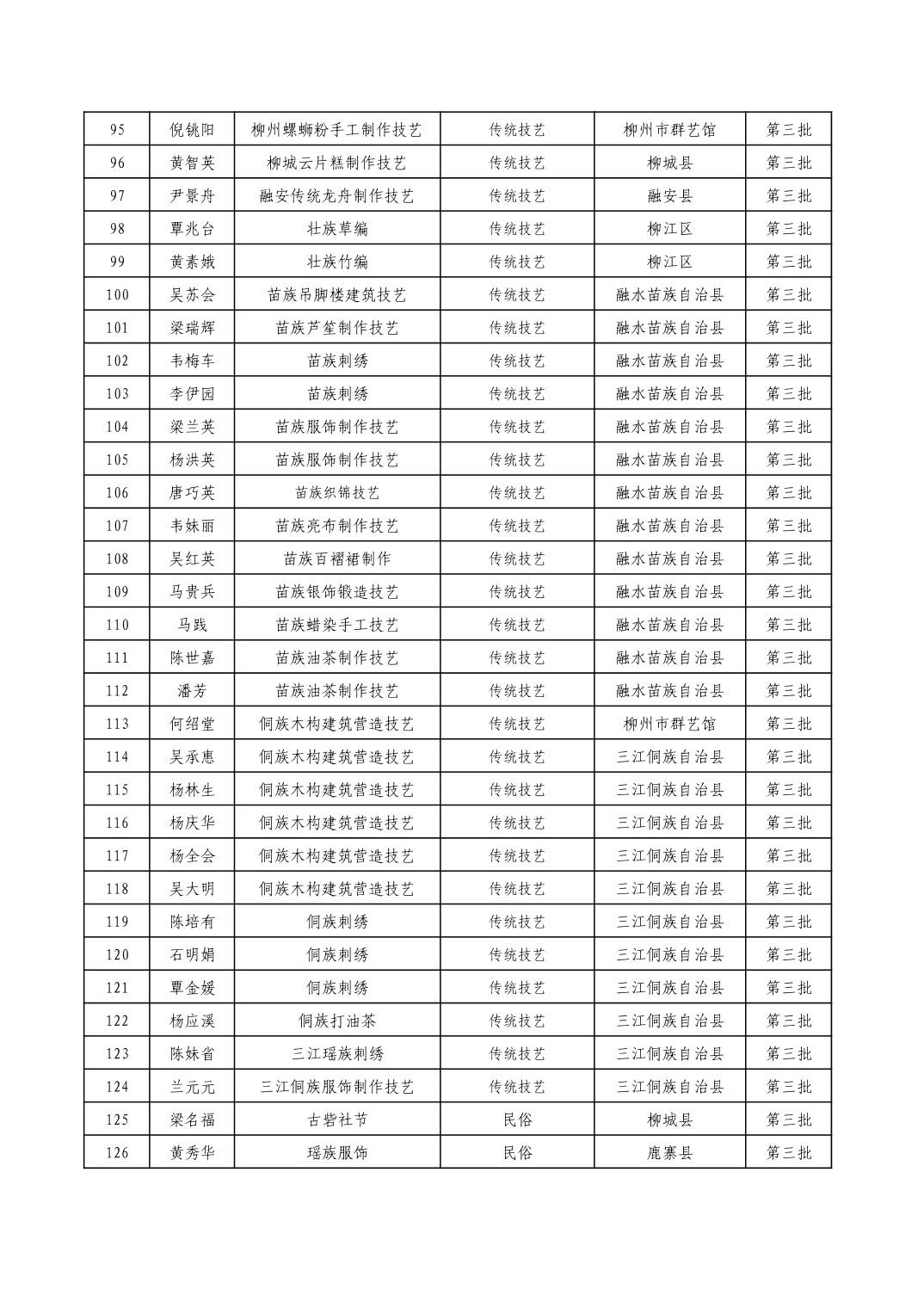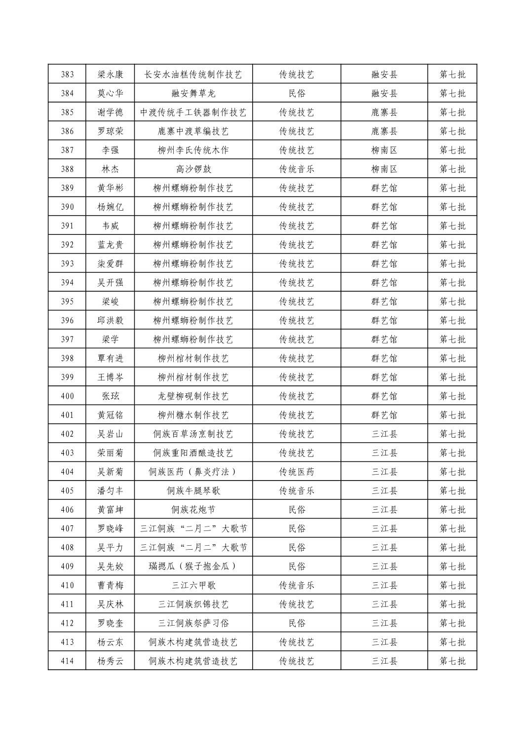 柳州市级非物质文化遗产项目代表性传承人一览表