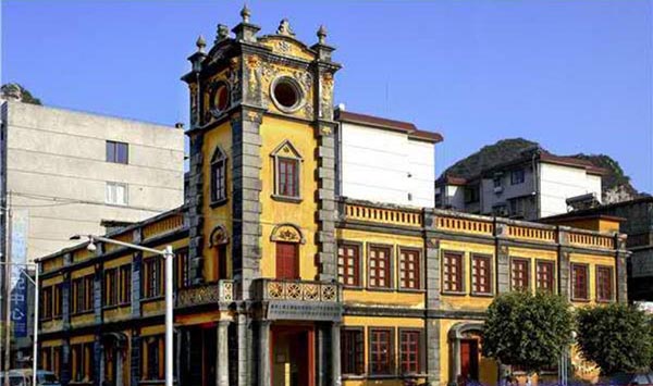 柳州大韩民国临时政府抗日斗争活动陈列馆,最初名为“柳州总车站”(汽车总站),是1925年由德国人设计,1928年建成的西洋式建筑,该栋建筑为厂字型建筑,建筑的拐角处有四层楼高,最高层有四个圆洞,装有四个大圆钟。1935年10月,柳州总车站迁往别处,该建筑更名为“乐群社”,当时塔钟损坏,没有修复运行。1938年,柳州遭日军机轰炸,乐群社南角被毁,塔钟也被炸坏,之后拆除。
