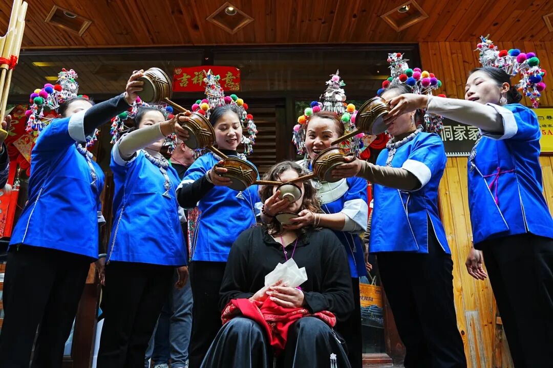 活动期间,国际采风团首先抵达三江县标志性文化地标——宜阳风雨桥,在震撼的建筑技艺中感受侗族传统文化的现代传承。次日,达人走进国家AAAAA级旅游景区程阳八寨,在程阳侗画馆了解侗族农民画起源并亲手体验簸箕画创作;身着精美侗族服饰漫步古寨巷弄,用镜头记录在古老侗寨中遇到的每一个美好瞬间。行程中,当地侗族居民献上侗族最高待客礼仪“拦路迎宾”迎接采风团的到来,并邀请到场的嘉宾一起参与进村民们的对歌互动与吉祥花抛送仪式中,带领现场游客朋友们真切感受到侗族同胞的热情与浪漫。