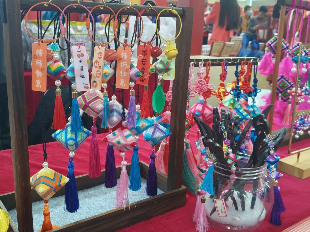 ▲“侗族吉祥花制作技艺”代表性传承人吴晓娟现场讲解吉祥花的历史渊源与文化寓意