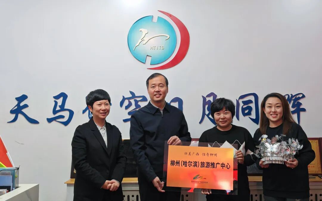 ↑柳州市文化广电和旅游局向黑龙江天马国旅旅行社集团有限公司进行“柳州(哈尔滨)旅游推广中心” 授牌