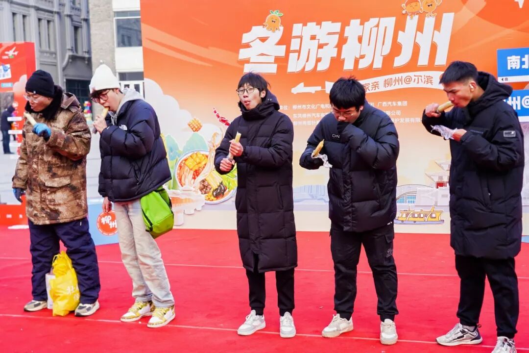 匠心独运的非遗文创精品、悠扬悦耳的侗族特色歌曲和崭新亮相的柳产汽车,也将柳州的民族工业风情带到现场,展现柳州的特色风貌与文化底蕴。抛吉祥花、啃甘蔗比赛、跳集体舞等互动环节精彩纷呈,现场热潮迭起。现场学柳州方言环节,不少哈尔滨市民踊跃参加,用柳州话解锁了螺蛳粉点单技巧。