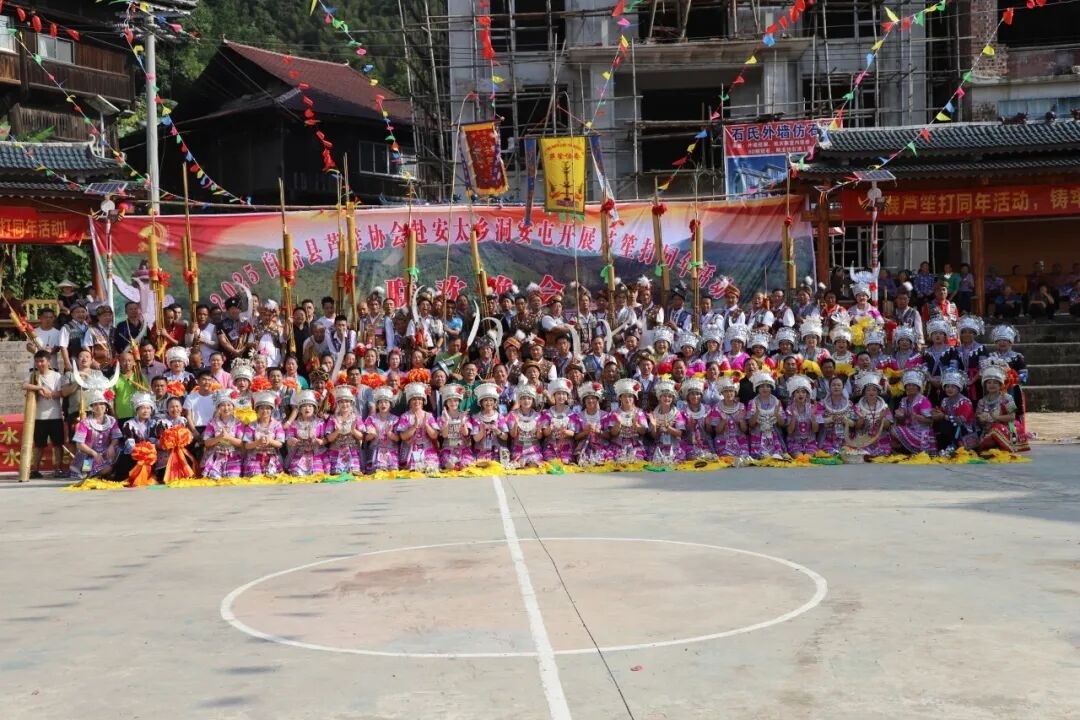▲村寨“打同年”,民族一家亲,现场跳芦笙舞,图源:秀美融水风情苗乡