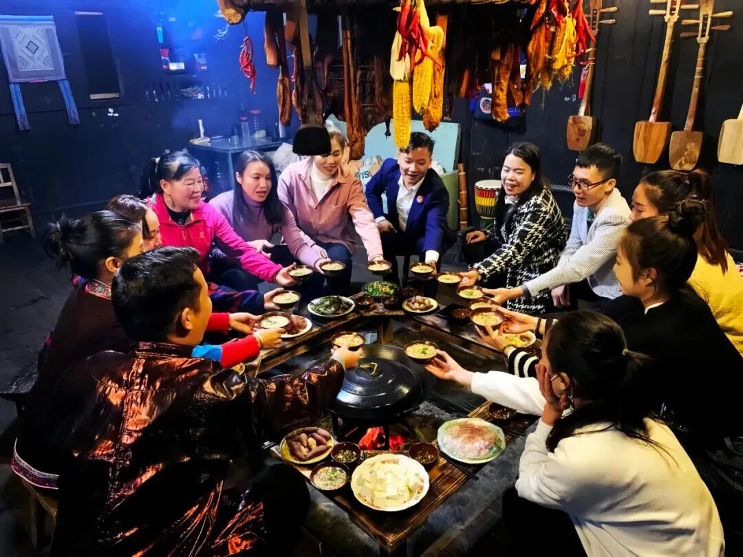最后,众人围炉而坐,共享地道火塘宴和柳州螺蛳粉。“早就听说过柳州螺蛳粉的大名,今天终于尝到正宗味道,果然名不虚传!”一位英国达人兴奋地表示。饭后,大家学唱侗族大歌与琵琶歌,简单乐器奏出的悠扬旋律令在场外国友人连连赞叹:“太神奇了,这样的音乐直击心灵!”