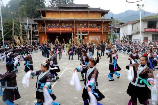 在开馆仪式上,芦笙踩堂、非遗展示、拉鼓拔河等特色民俗节目轮番上演,现场银饰叮当、彩裙飞扬,清脆乐声响彻山谷,欢快而富有韵律的舞步,传递出苗乡人民对生活的热爱和对未来的憧憬,氛围十分热烈。
