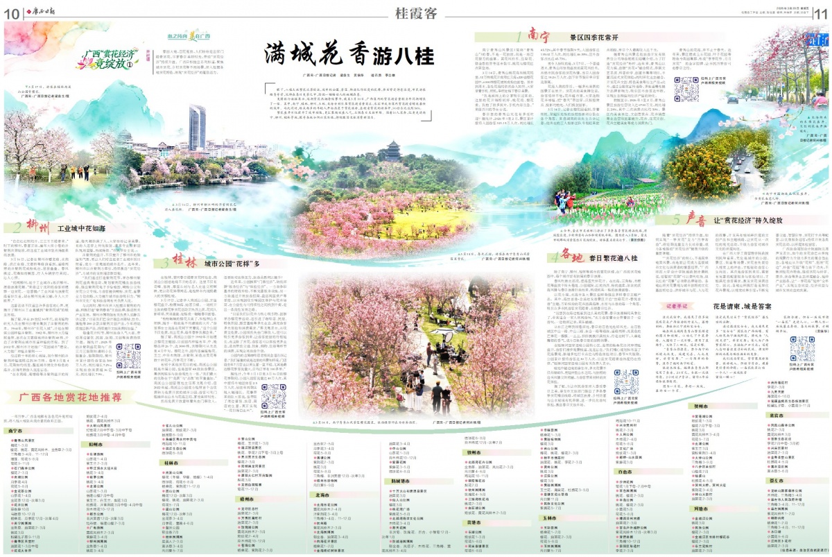 繁花盛开不仅提升了城市颜值,更汇聚起旺盛人气,点燃春日文旅市场。循着沁人花香,记者走进南宁、柳州、桂林等地,探寻各地如何以花为媒,持续激活文旅消费新活力。