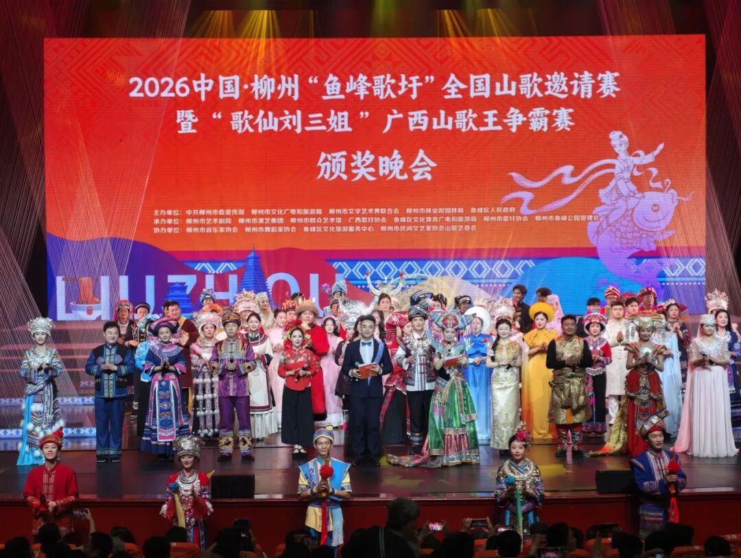2026中国·柳州“鱼峰歌圩”全国山歌邀请赛暨“歌仙刘三姐”广西山歌王争霸赛颁奖晚会现场。