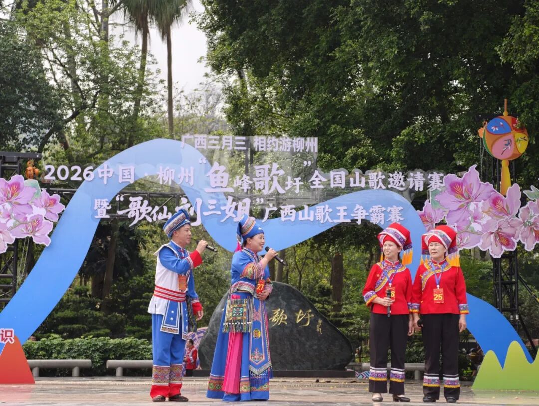 2026中国·柳州“鱼峰歌圩”全国山歌邀请赛暨“歌仙刘三姐”广西山歌王争霸赛系列活动在鱼峰公园歌仙广场开幕,活动融合“好听、好看、好玩”等元素,推动非物质文化遗产年轻化传承。本届“鱼峰歌圩”全国山歌邀请赛汇集了全国16个省(自治区、直辖市)、15个民族,以及越南、老挝、比利时、阿富汗、印度尼西亚5个国家的优秀山歌手、民歌爱好者参赛;“歌仙刘三姐”广西山歌王争霸赛吸引了来自广西、湖南、云南、贵州、四川、广东六地的48名山歌王和山歌手,赴约鱼峰山下一展歌喉、切磋竞技。