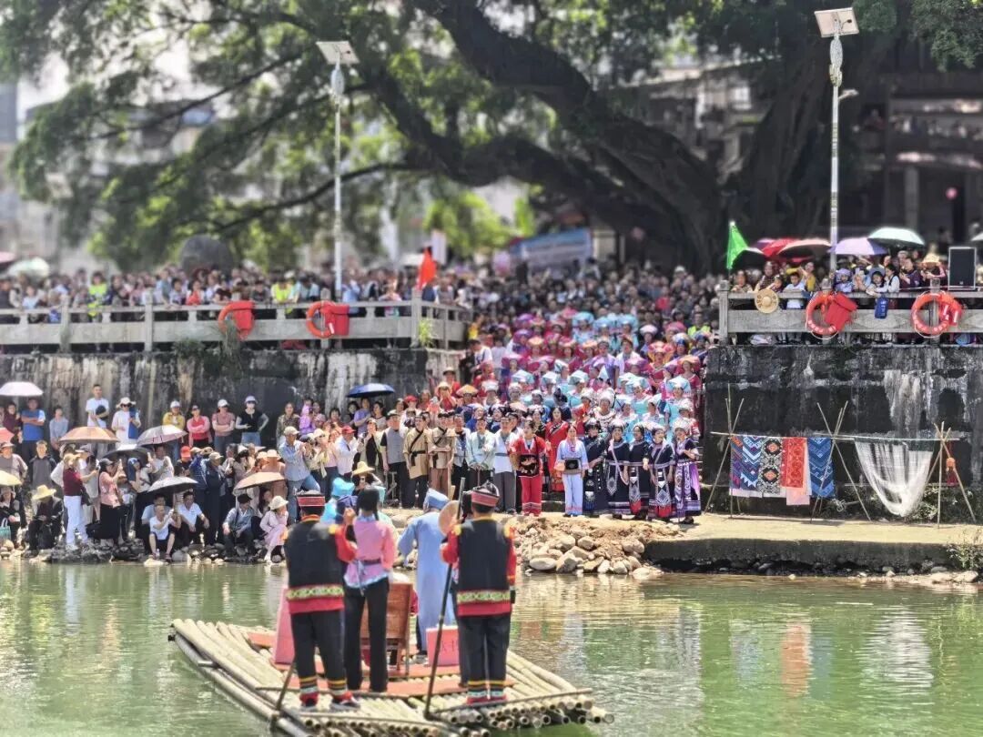 鹿寨县在中渡古镇举办“桂在邻里 壮欢三月三”山歌会及非遗产品展销会,组织山歌对唱、歌圩交流和非遗产品展销,让现场观众沉浸式体验民族文化的魅力。