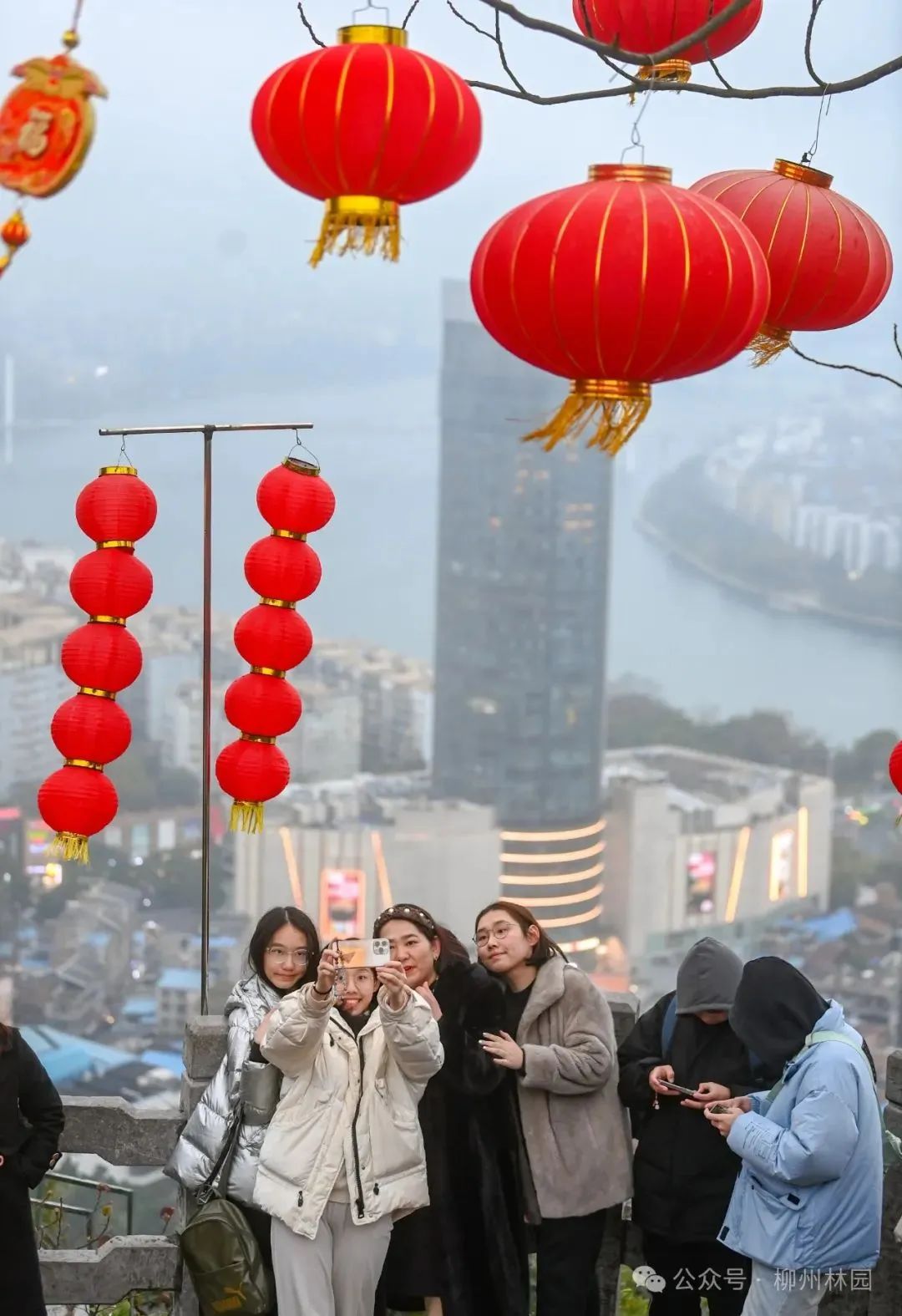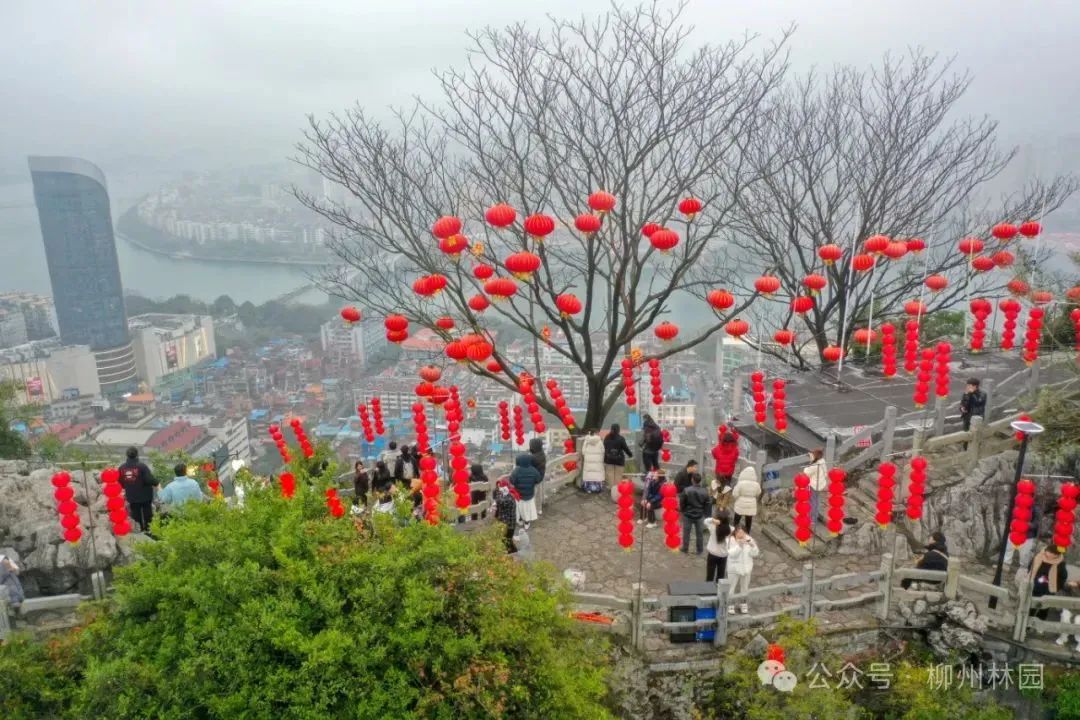 立鱼峰景区内早早迎来了登高祈福的市民游客,登上马鞍山顶,看柳宗元笔下的“江流曲似九回肠”,一览龙城全貌,与龙城拍一张合影,景区为登上马鞍山顶的前100名游客赠送“福”饰挂件,景区春节期间游客量突破15.8万人次。