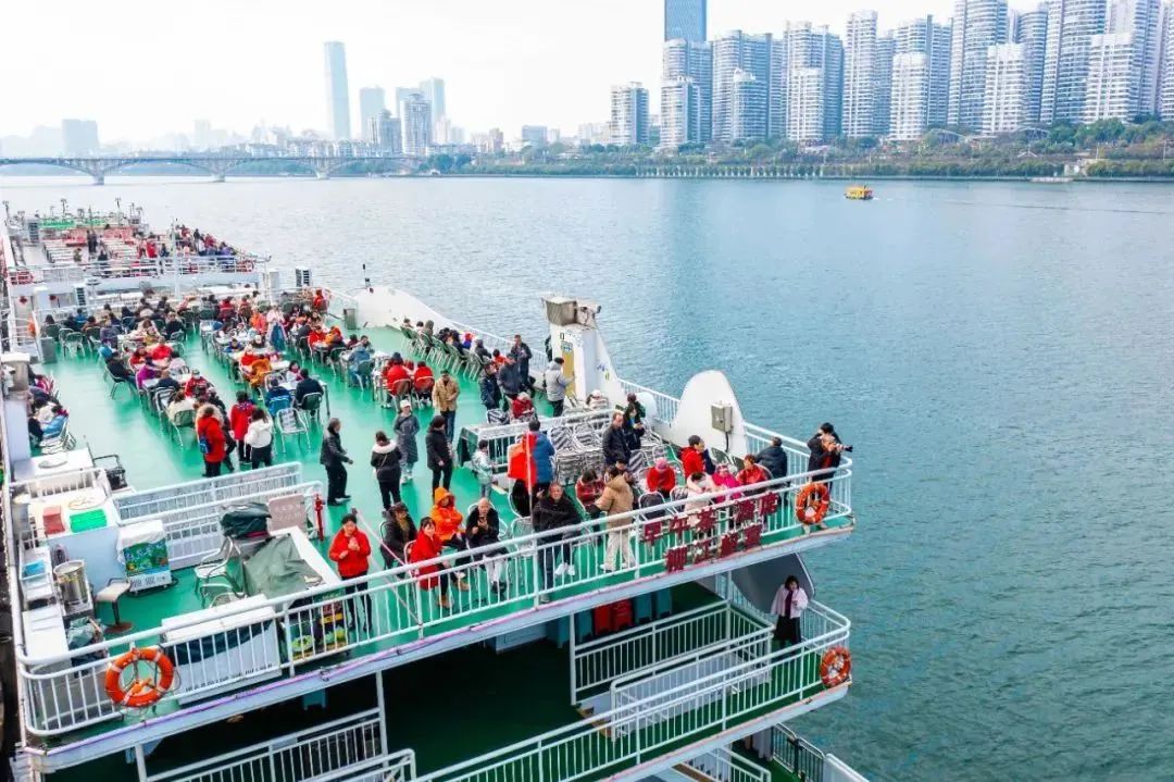 ▲百里柳江景区“开年第一游”活动,市民游客乘船感受新春气氛 组图图源:柳州文旅集团