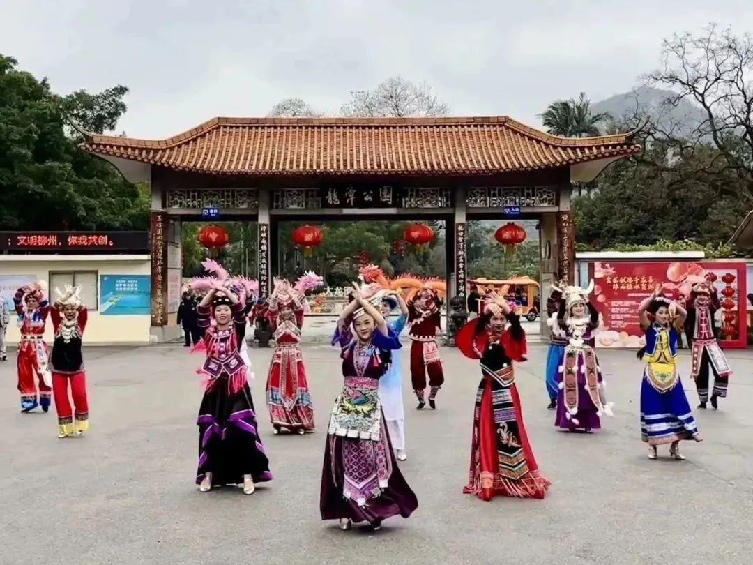 在龙潭公园,两条立体造型龙摆件成为显眼包,吸引游客前来打卡,景区举办“金龙献瑞千家喜 锦山绣水贺新春”龙年迎新春活动,舞龙、民族融合版的“科目三”、送福巡游、民俗集市非遗体验等丰富活动,带领市民游客开启“祥龙”幸福之旅,龙潭公园春节首日游客量更是达到4.8万人次。央视《新闻联播》《24小时》报道柳州园博园、龙潭公园景区游客赏花游园参加龙年迎新春活动,此外,全市多个景区门票5折优惠或免门票活动,乡村旅游区推出民宿春节优惠,催生文旅消费热潮,广西日报要闻版刊发《丰富活动搅热龙城》,报道各景区景点新年活动。
