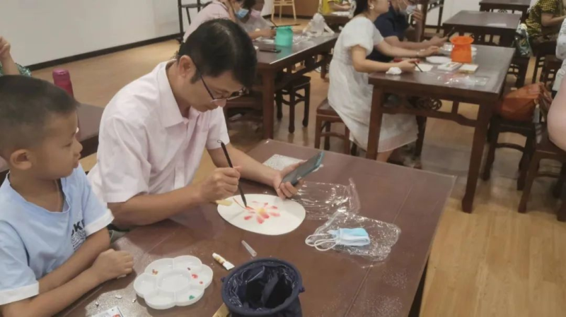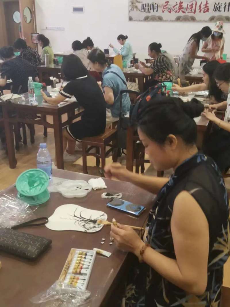 活动现场,在韦老师的示范和指导下,学员们以“清风”为主题,创作属于自己的“廉洁扇”。现场群众认真创作,相互交流,气氛非常融洽,不到一个小时,洁白的团扇上勾勒出一朵朵水墨莲花,正可谓“清风徐来,莲花洁开”。