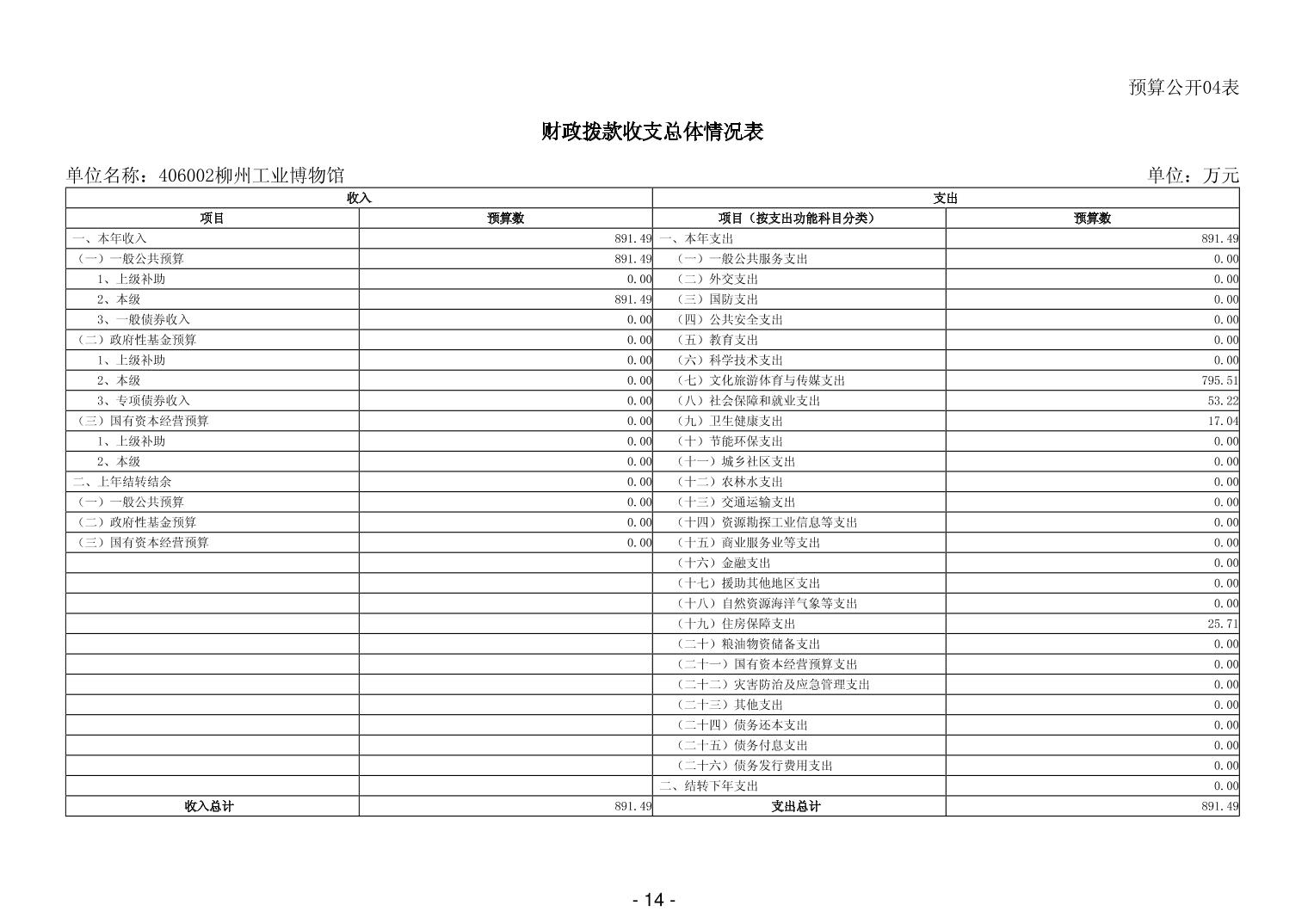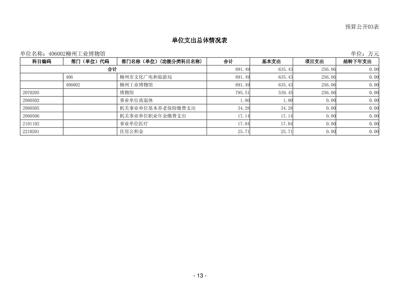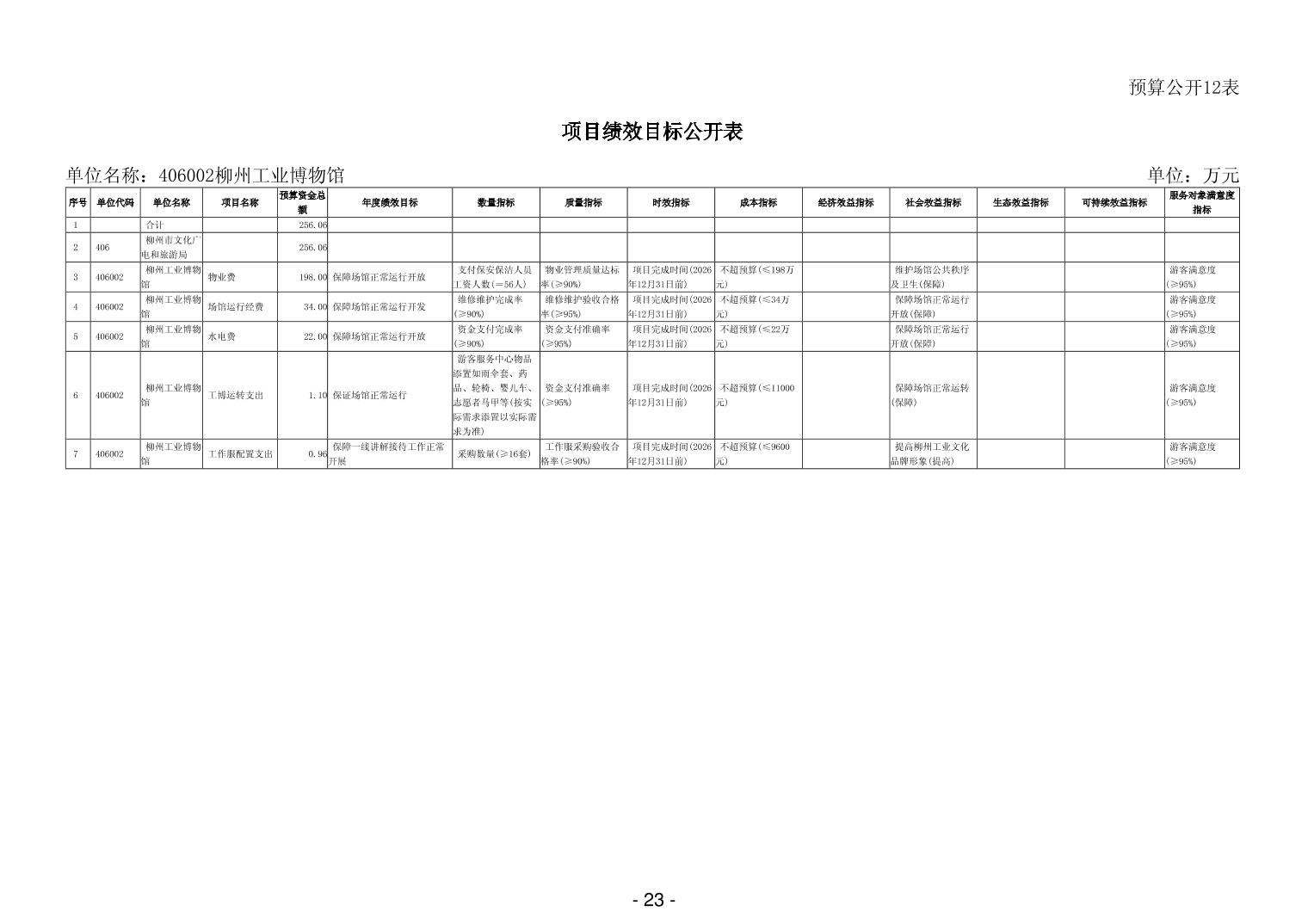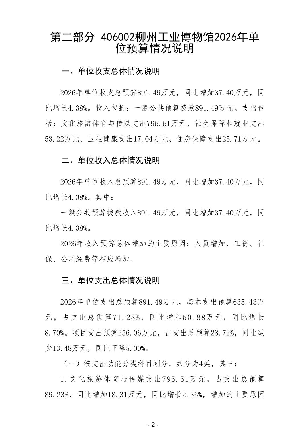 406002柳州工业博物馆2026年单位预算公开说明