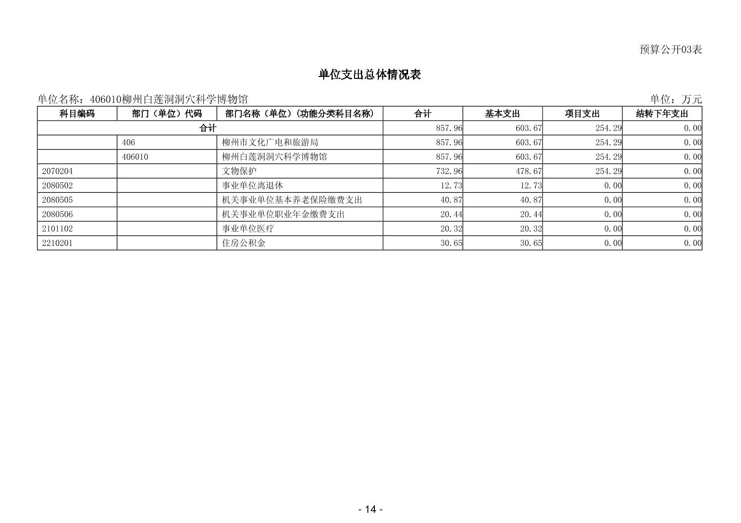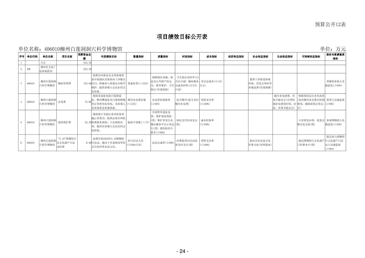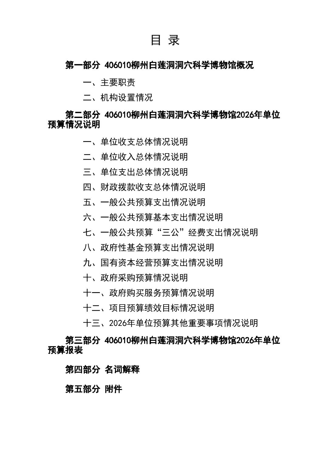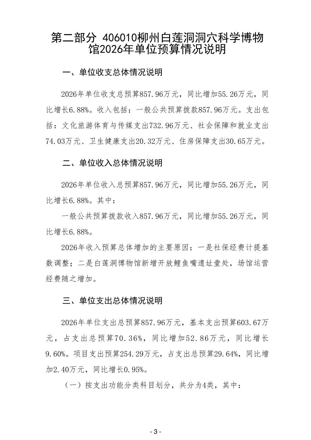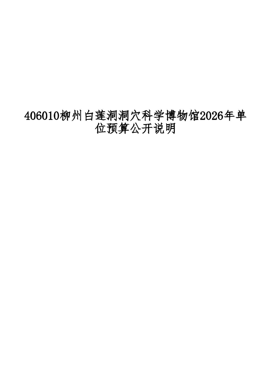 406010柳州白莲洞洞穴科学博物馆2026年单位预算公开说明