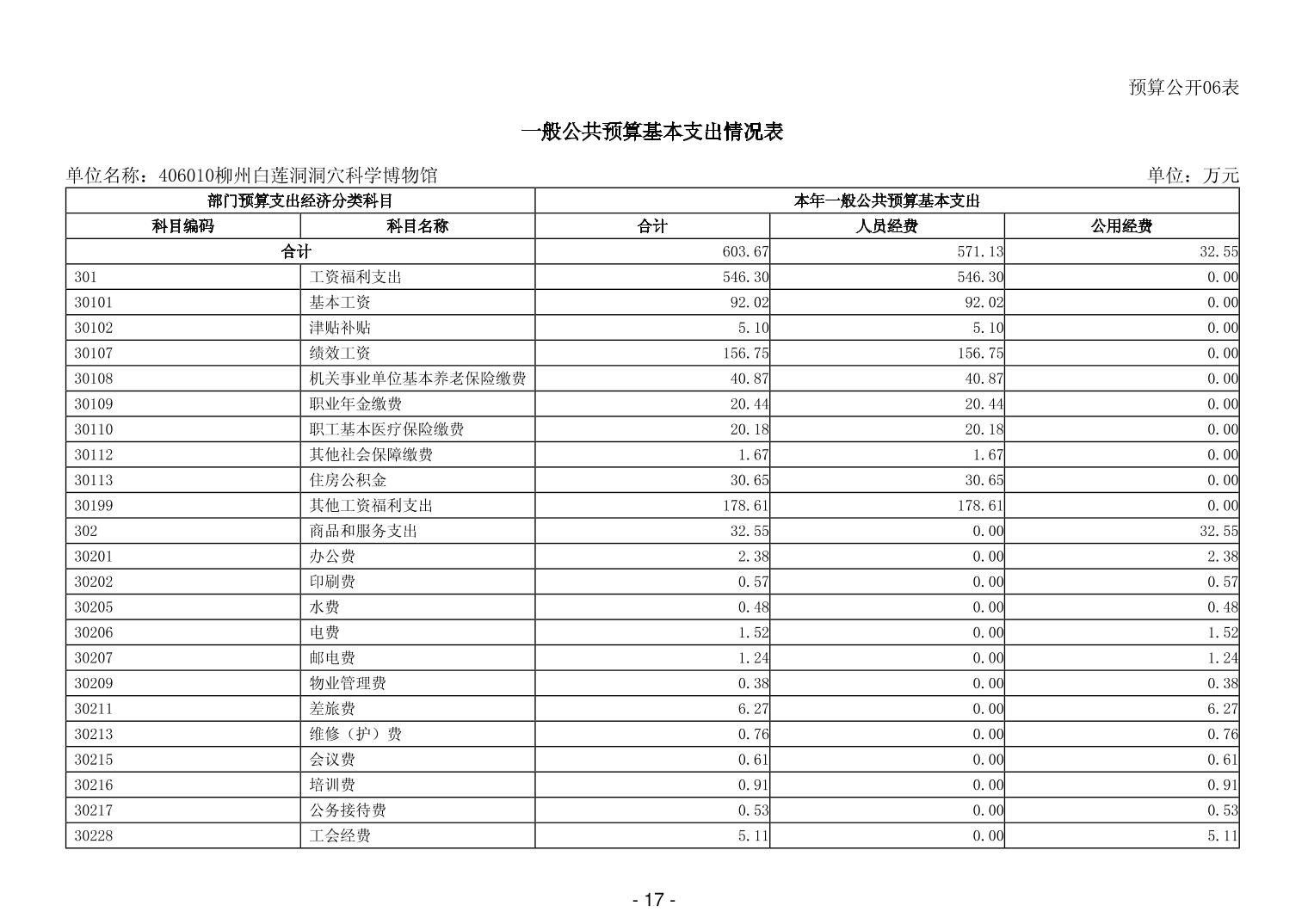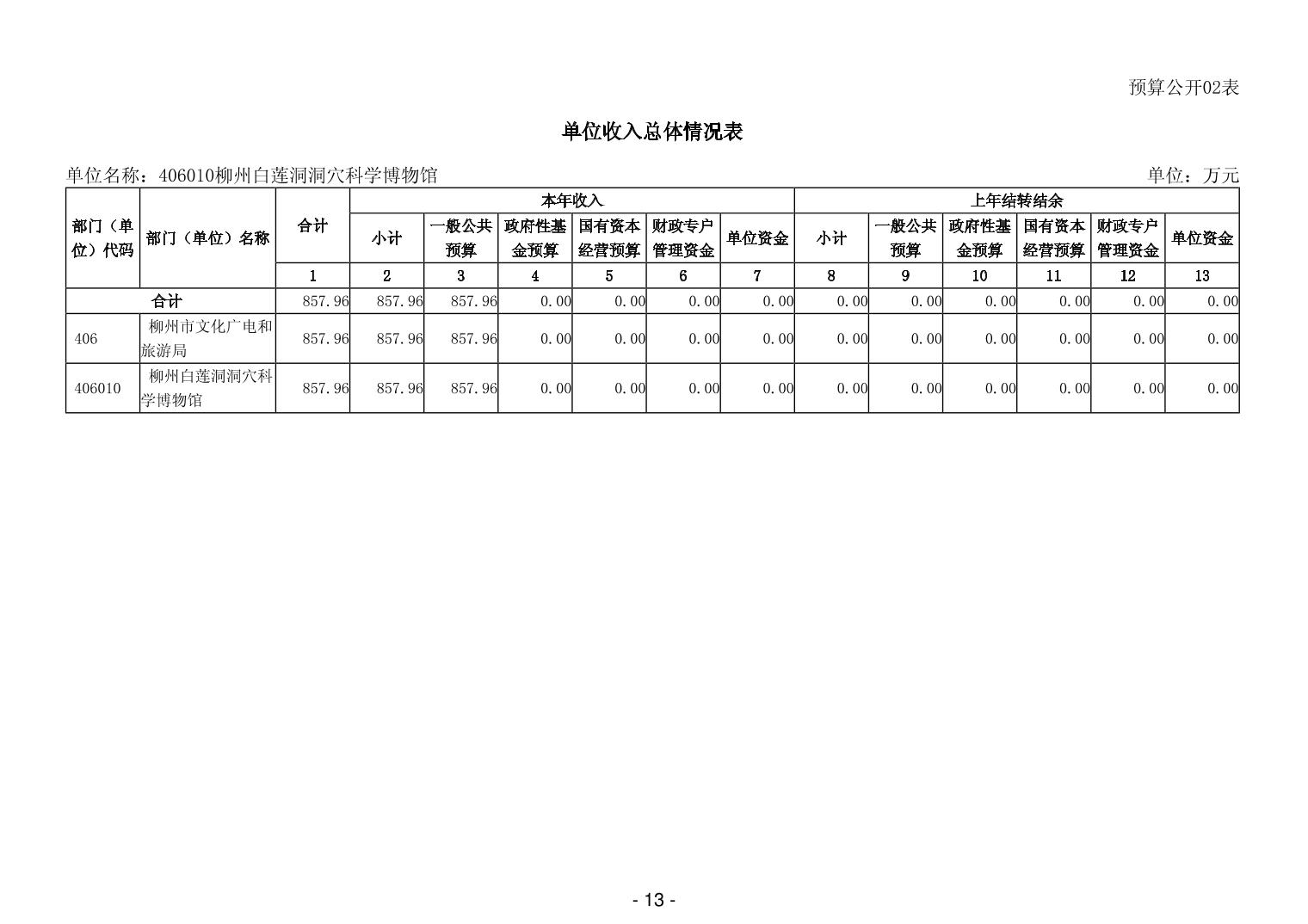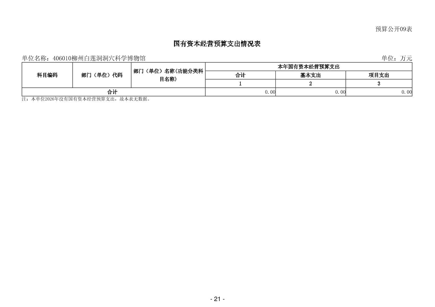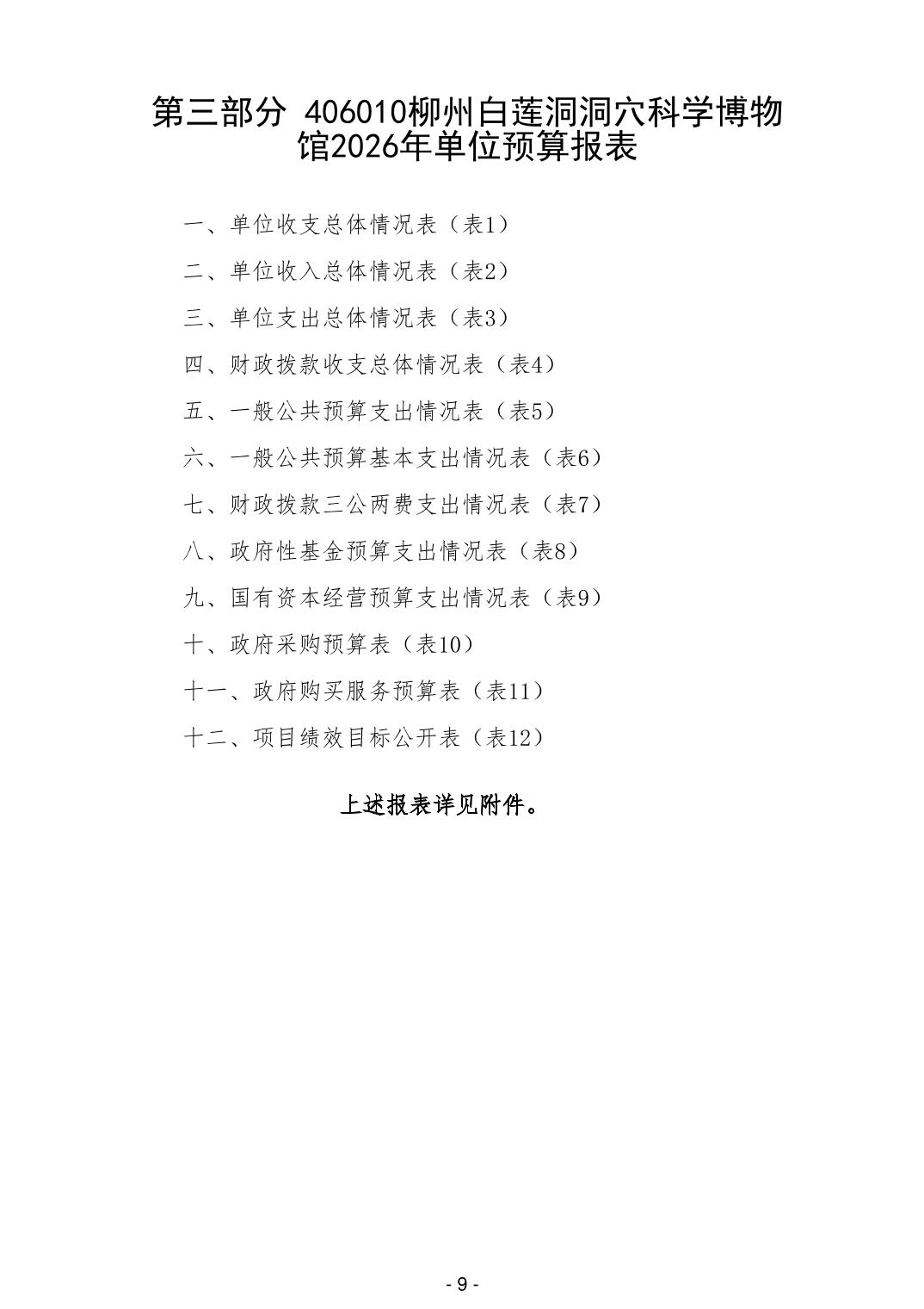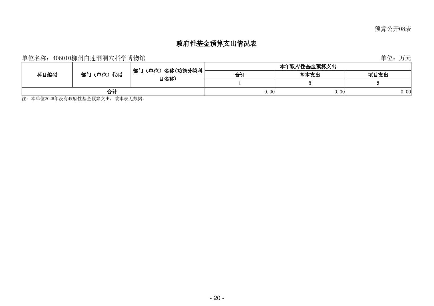406010柳州白莲洞洞穴科学博物馆2026年单位预算公开说明
