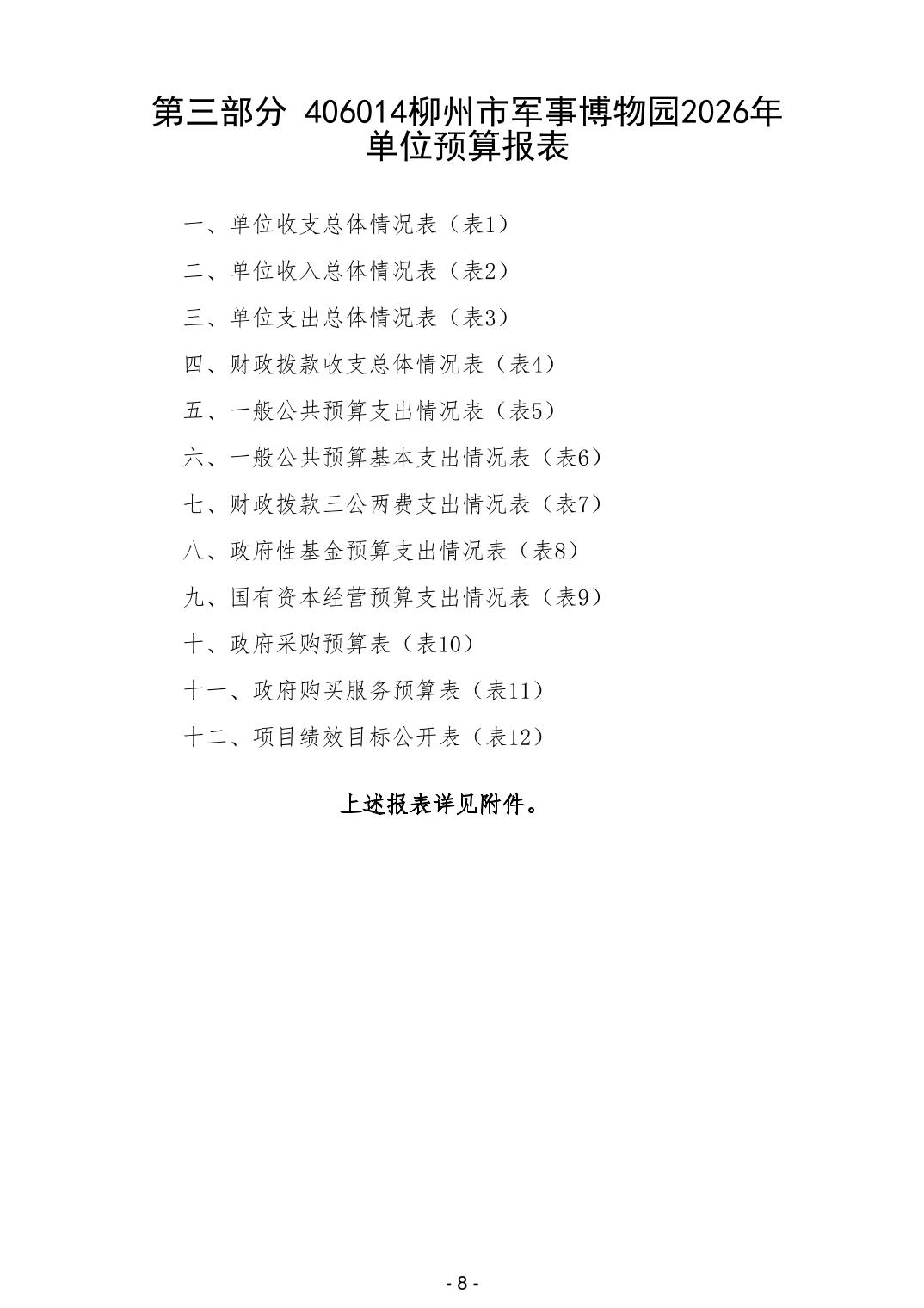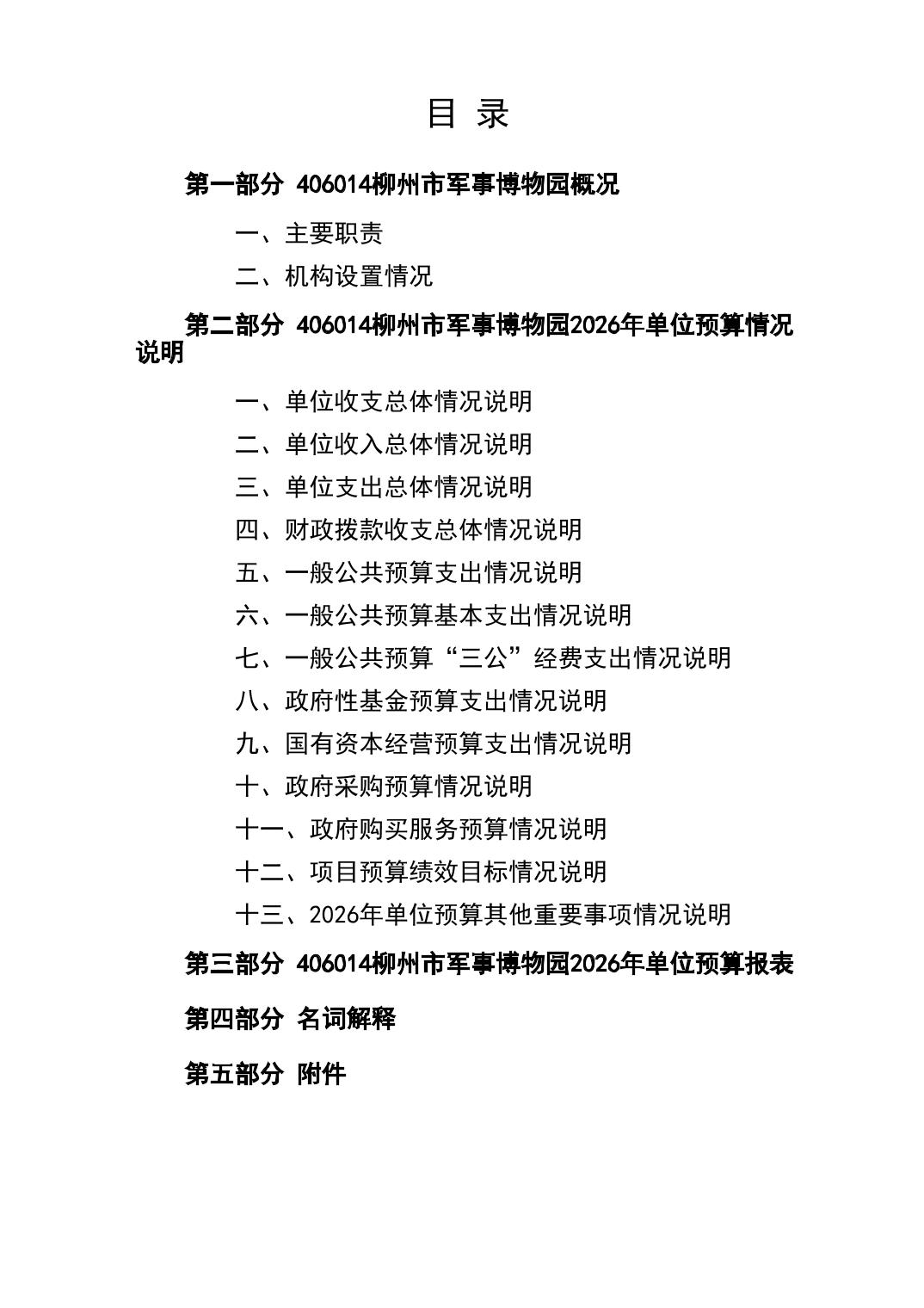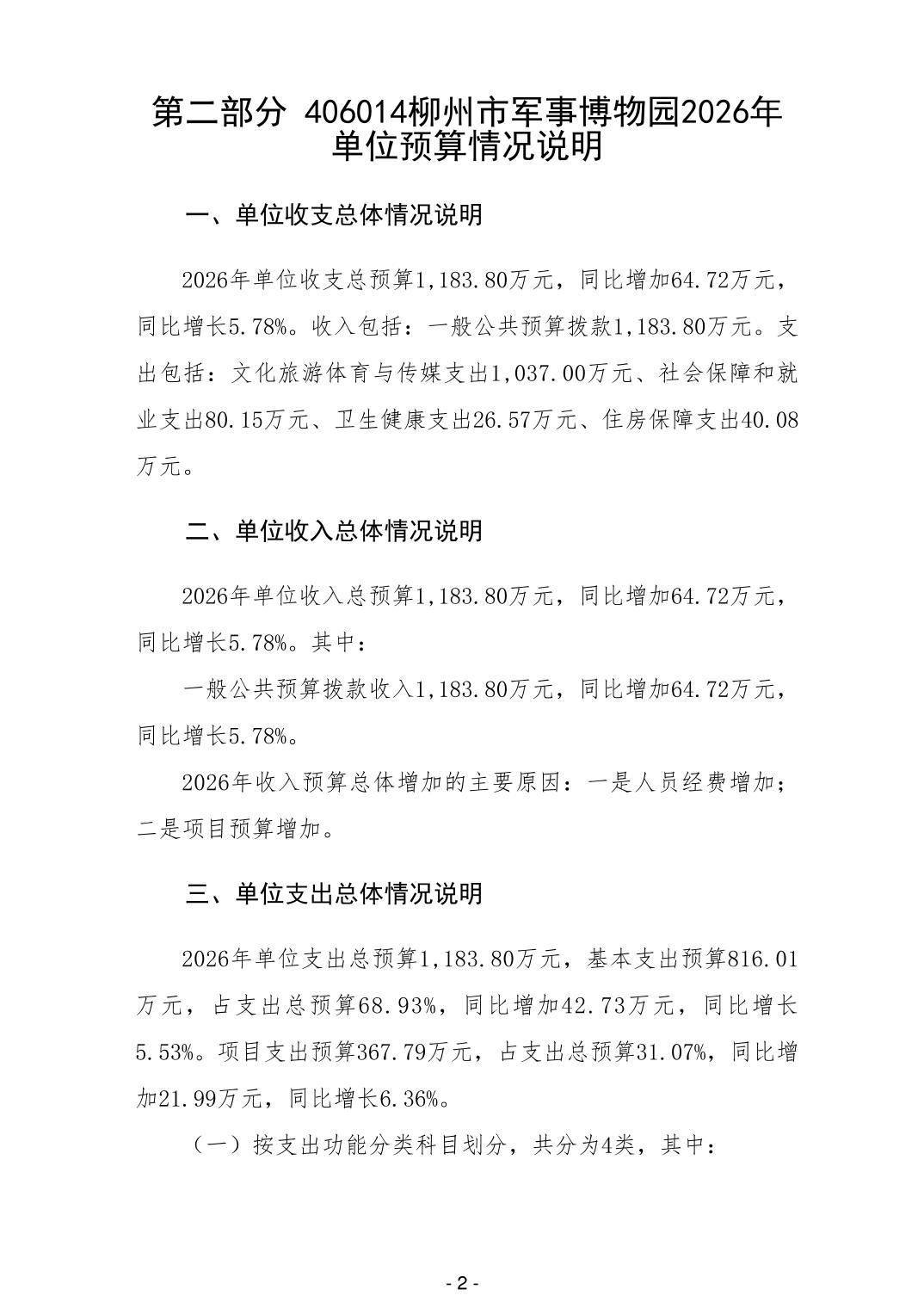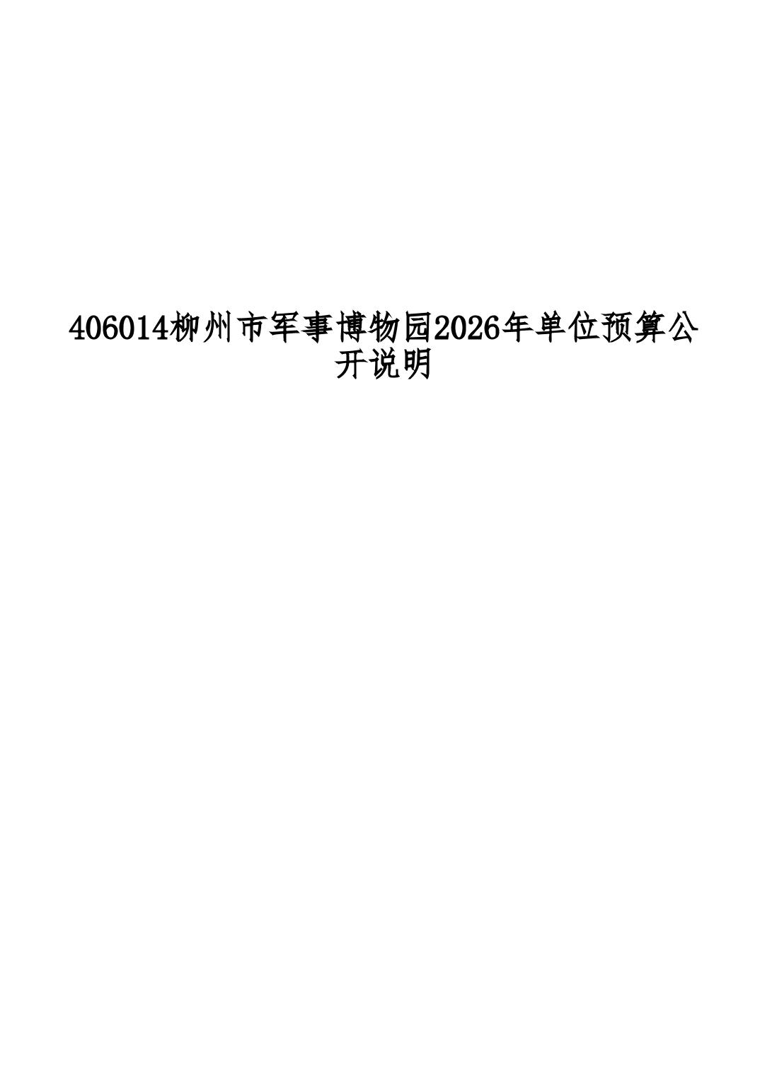 406014柳州市军事博物园2026年单位预算公开说明