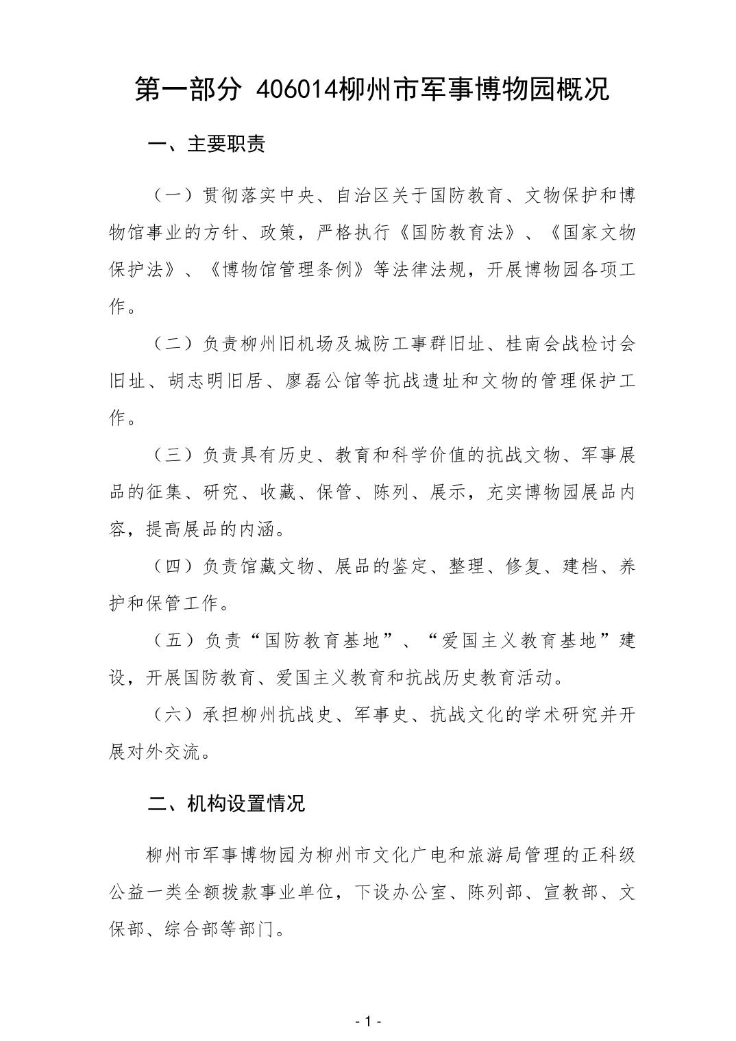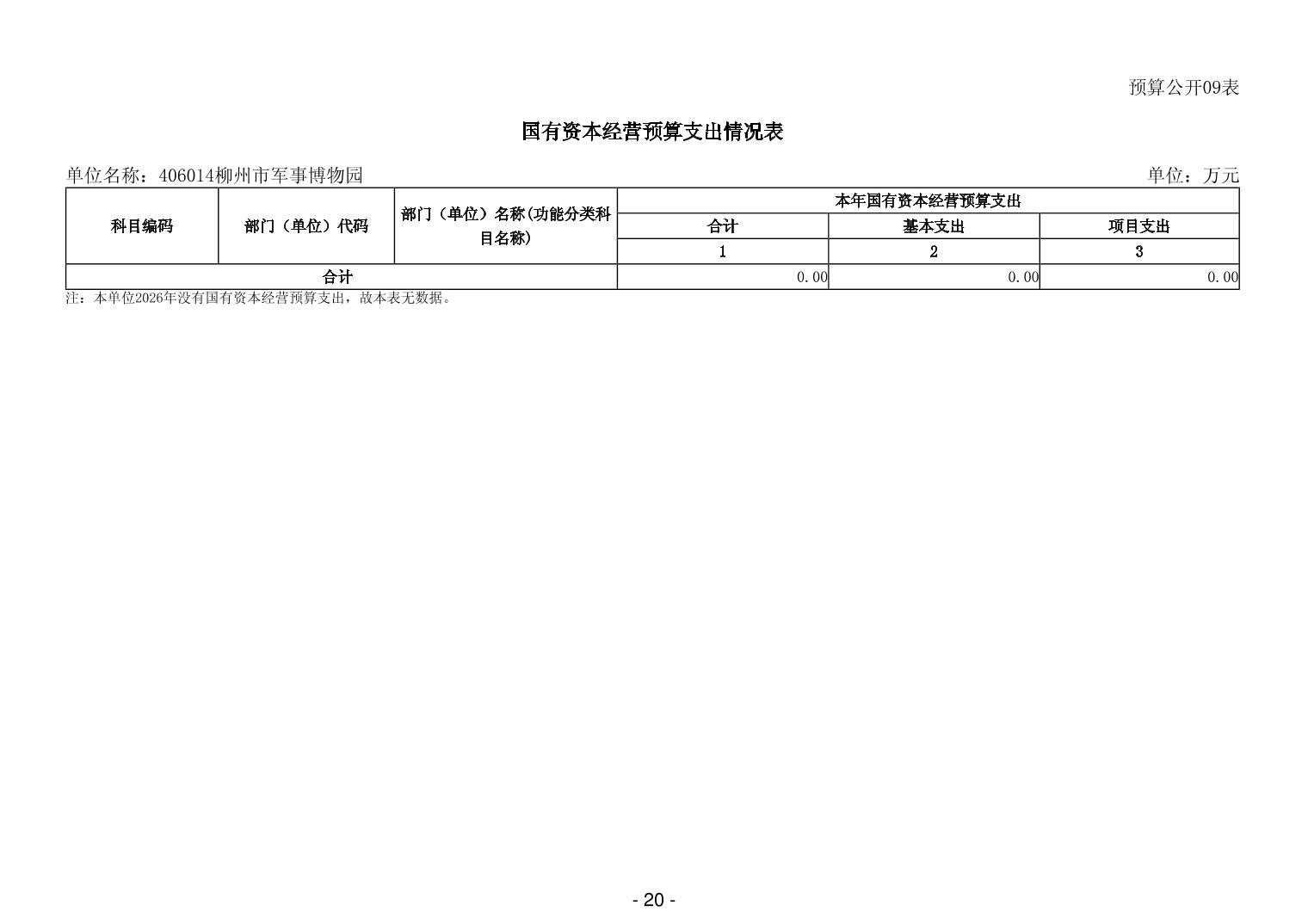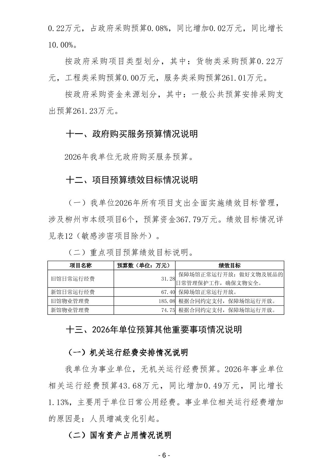 406014柳州市军事博物园2026年单位预算公开说明