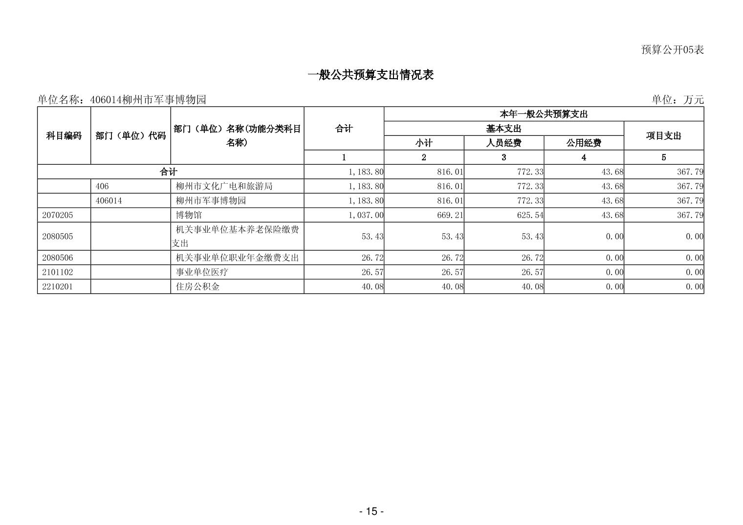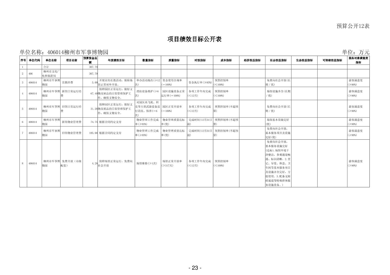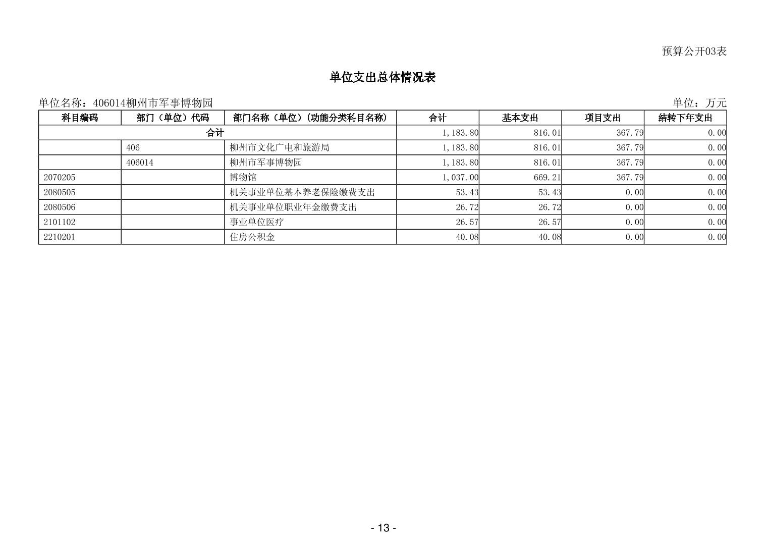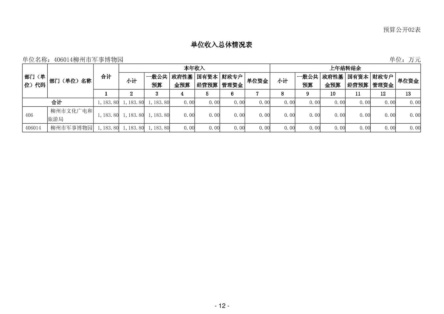 406014柳州市军事博物园2026年单位预算公开说明