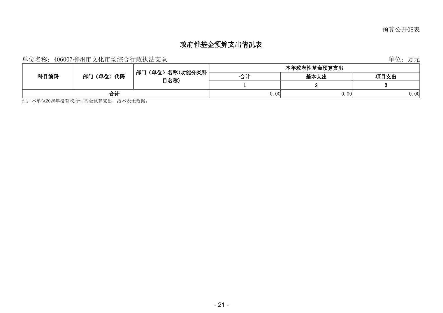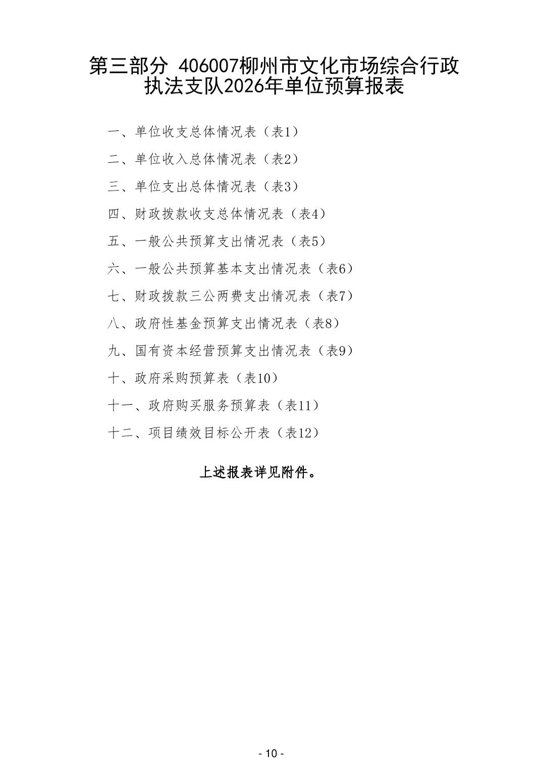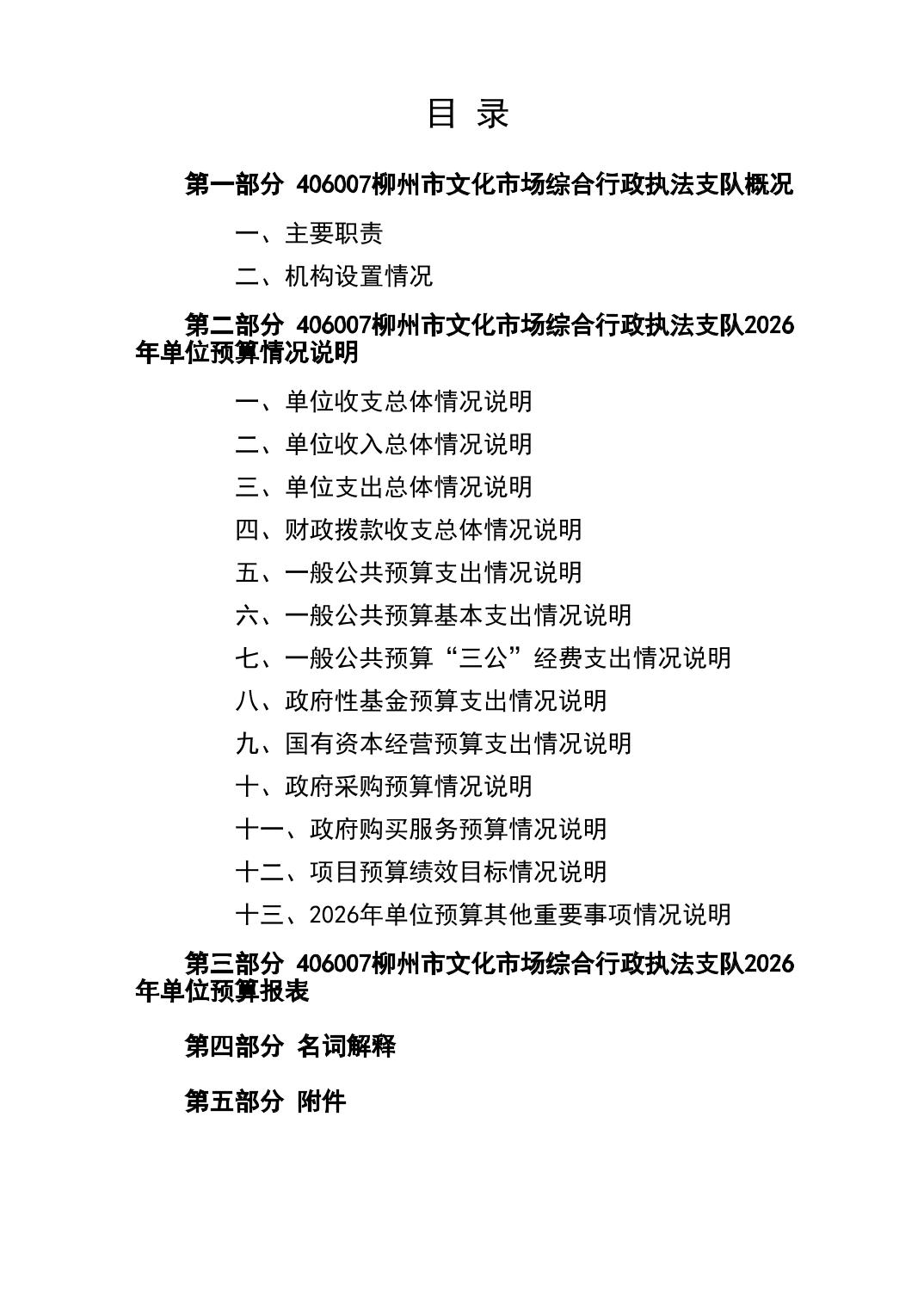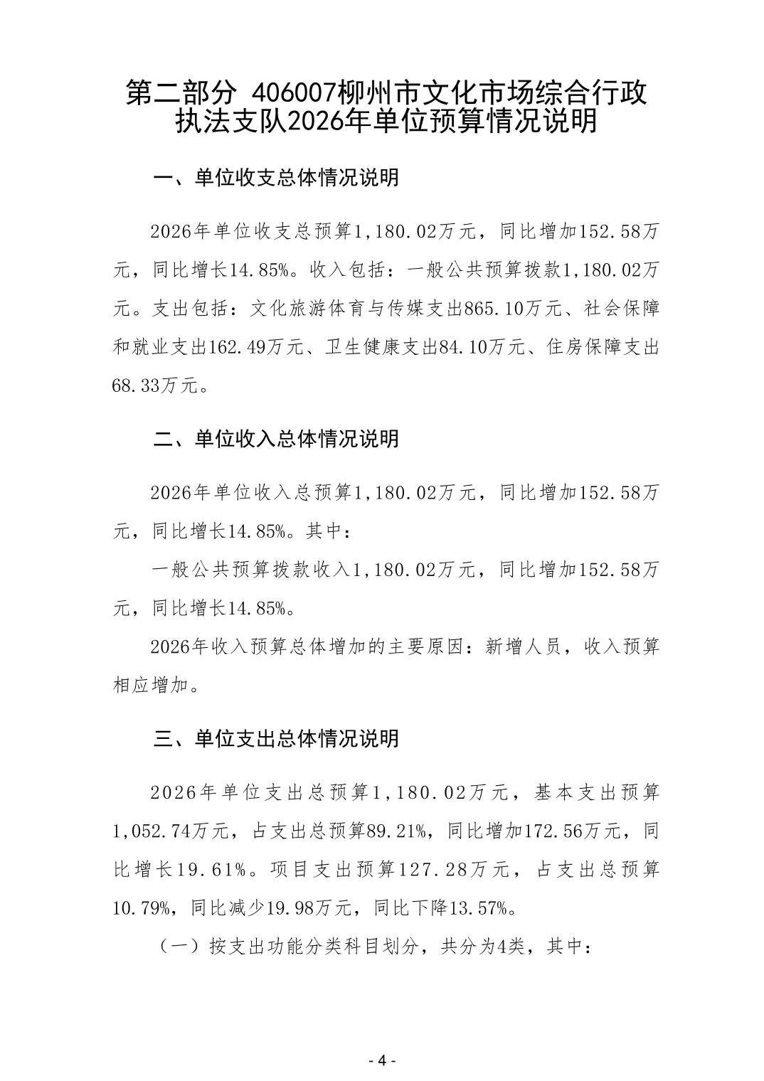 406007柳州市文化市场综合行政执法支队2026年单位预算公开说明