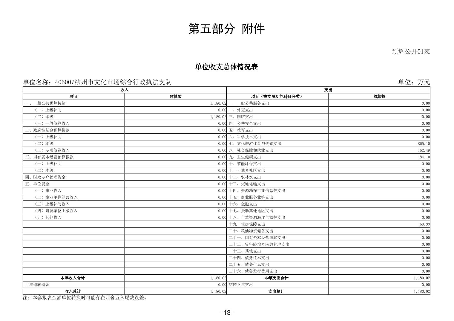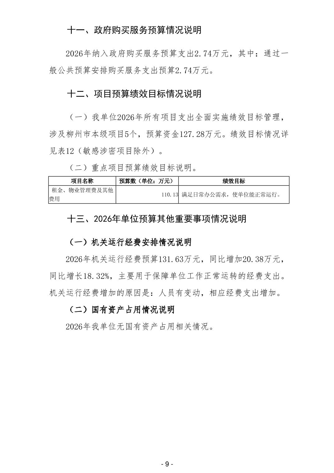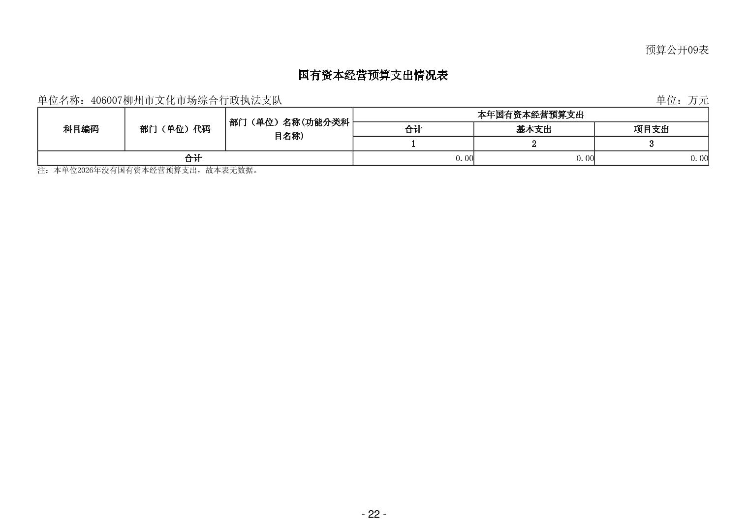 406007柳州市文化市场综合行政执法支队2026年单位预算公开说明