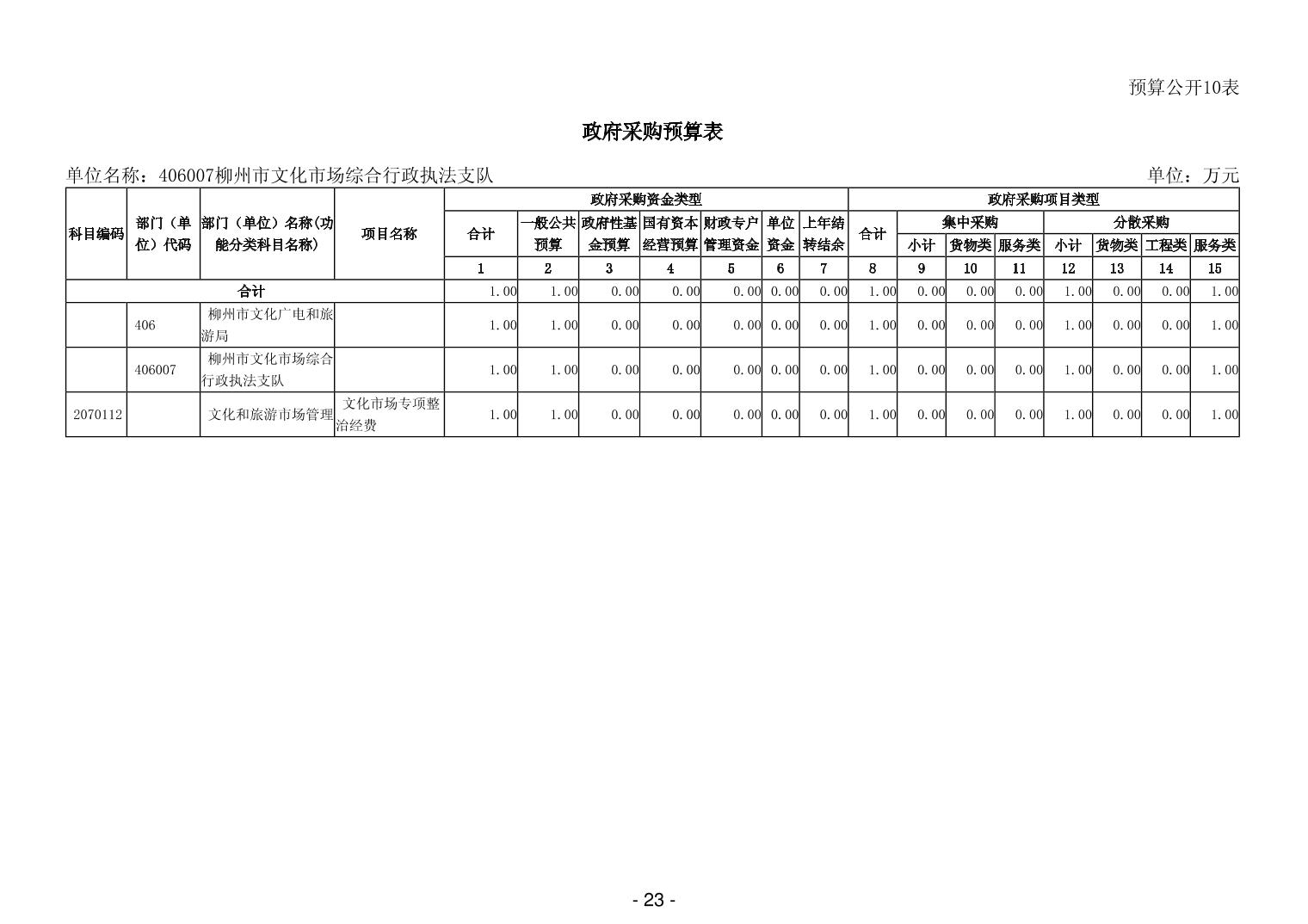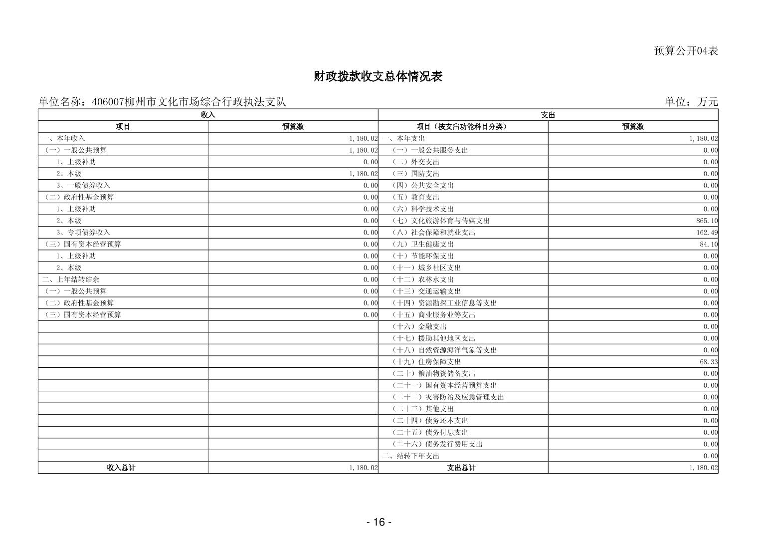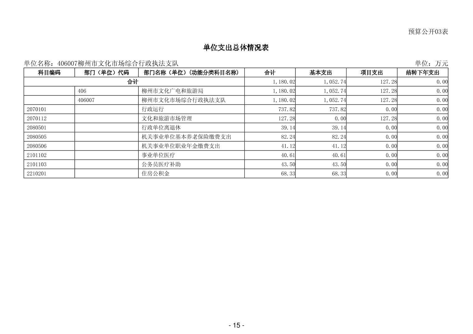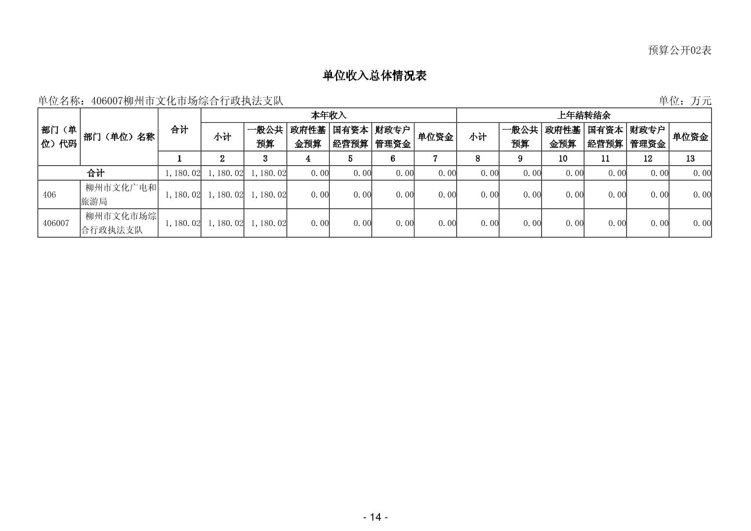 406007柳州市文化市场综合行政执法支队2026年单位预算公开说明