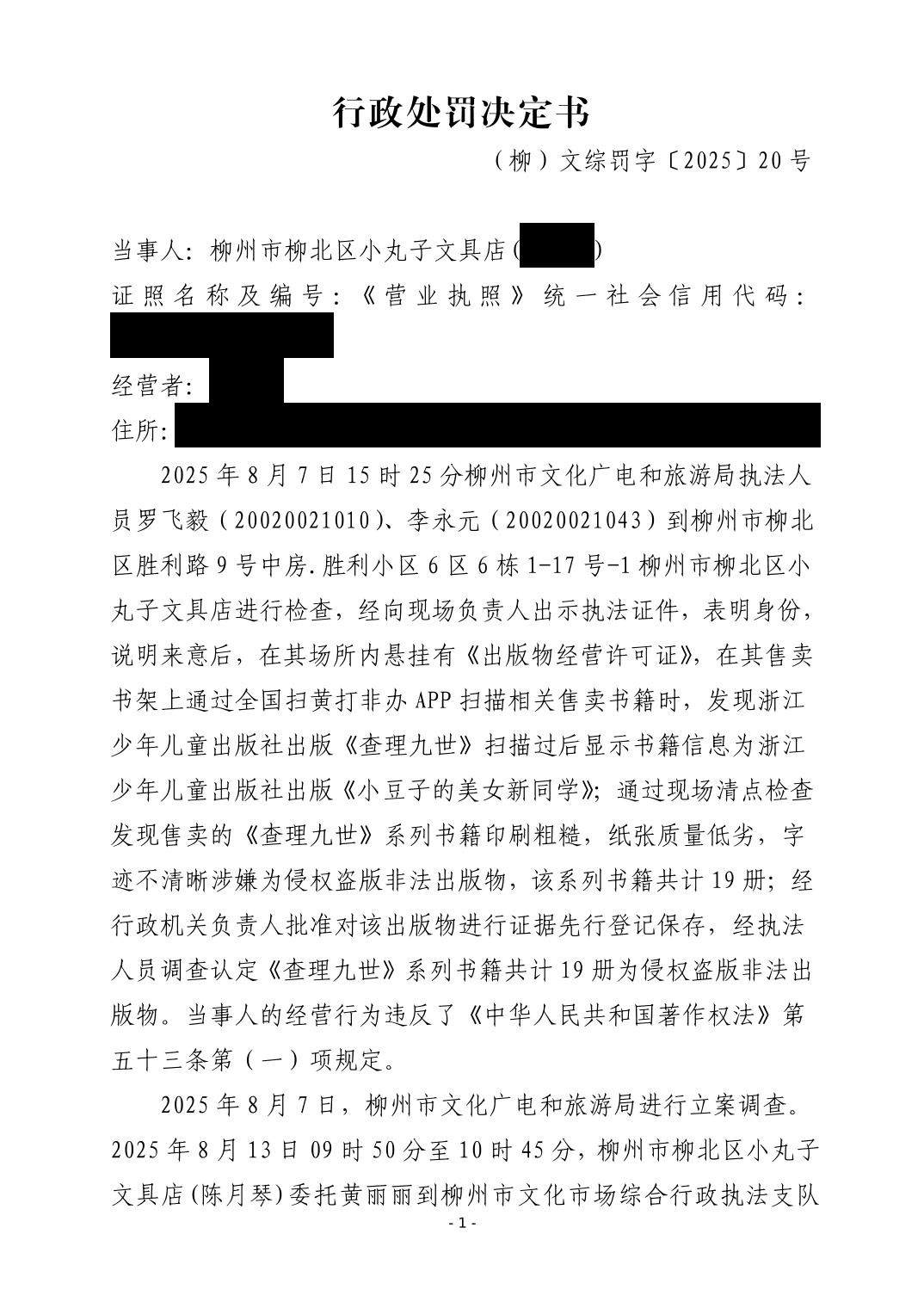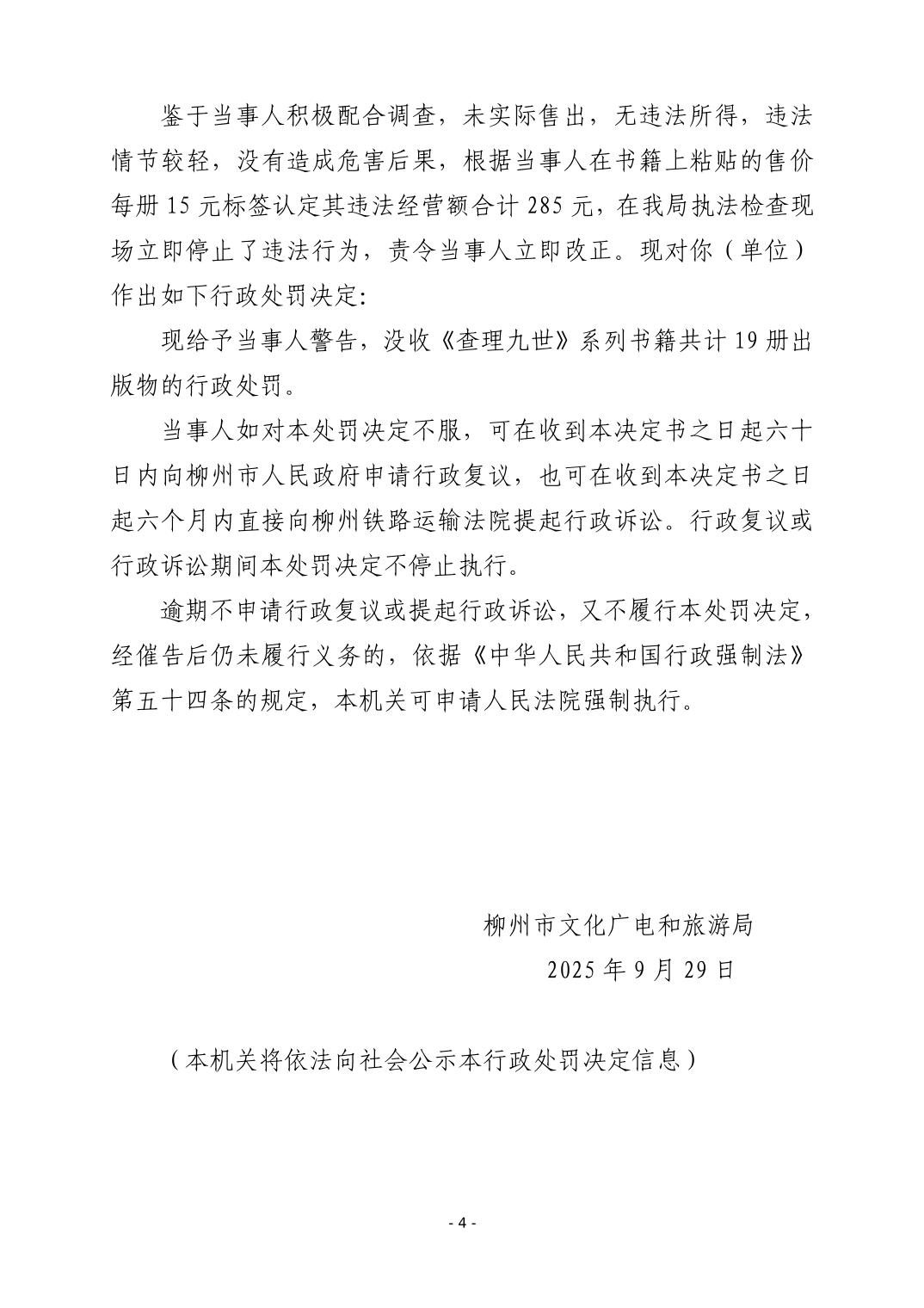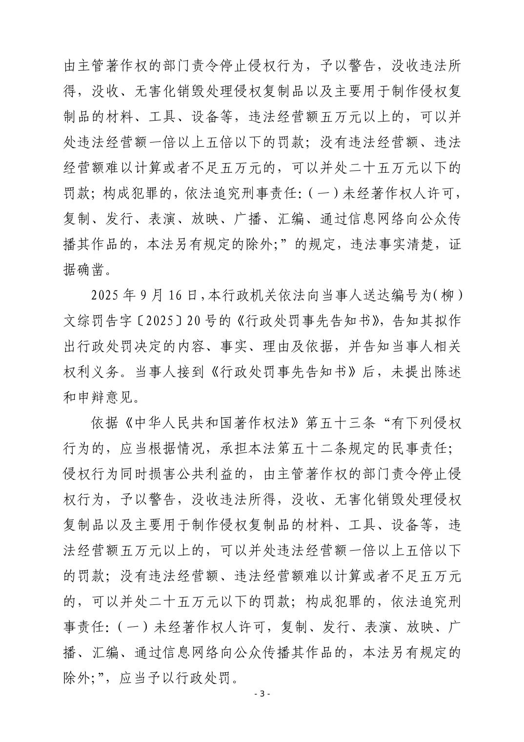(柳)文综罚字〔2025〕20号