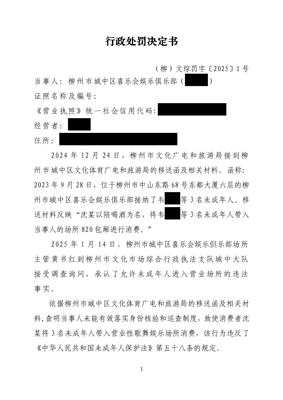 (柳)文综罚字〔2025〕1号